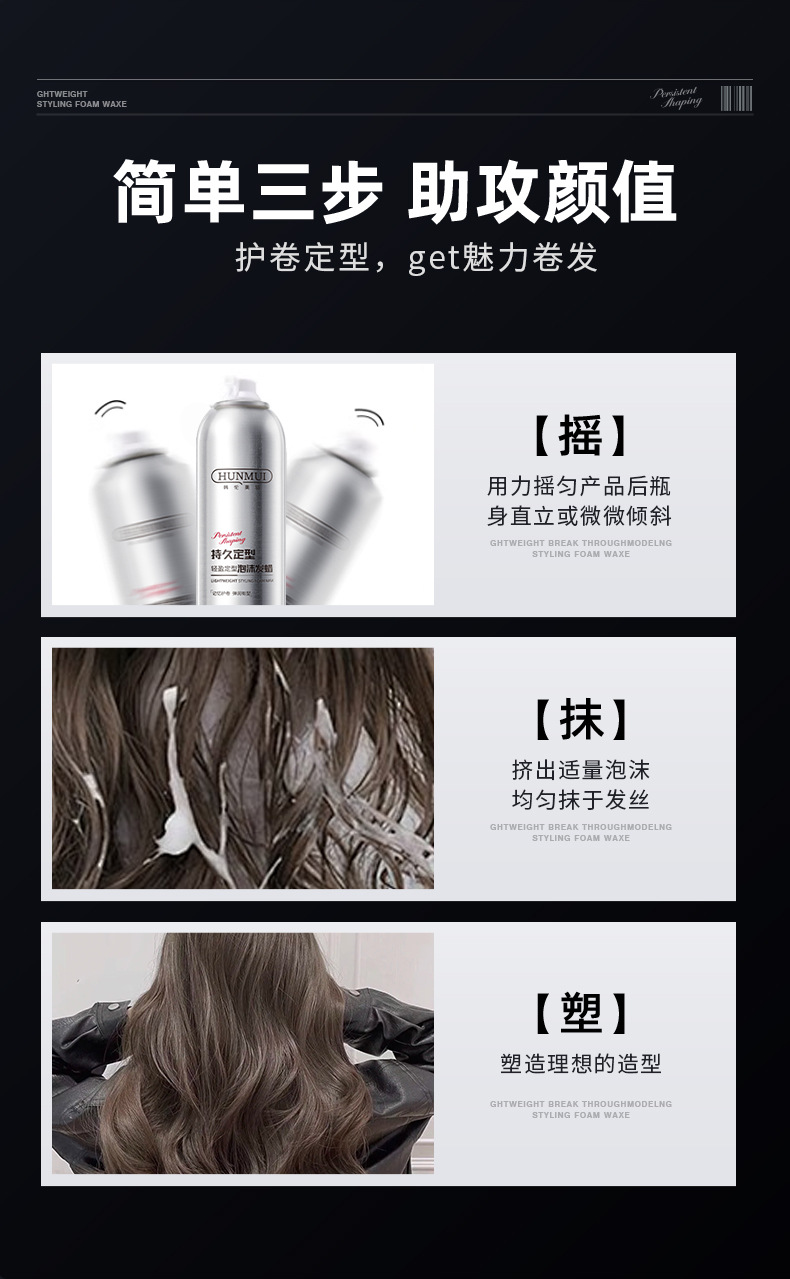 Han Lun Meiyu Легкая пенка для укладки волос Воск для волос Мужские средства по уходу за волосами Стойкий гель Водный спрей для волос Мусс-спрей