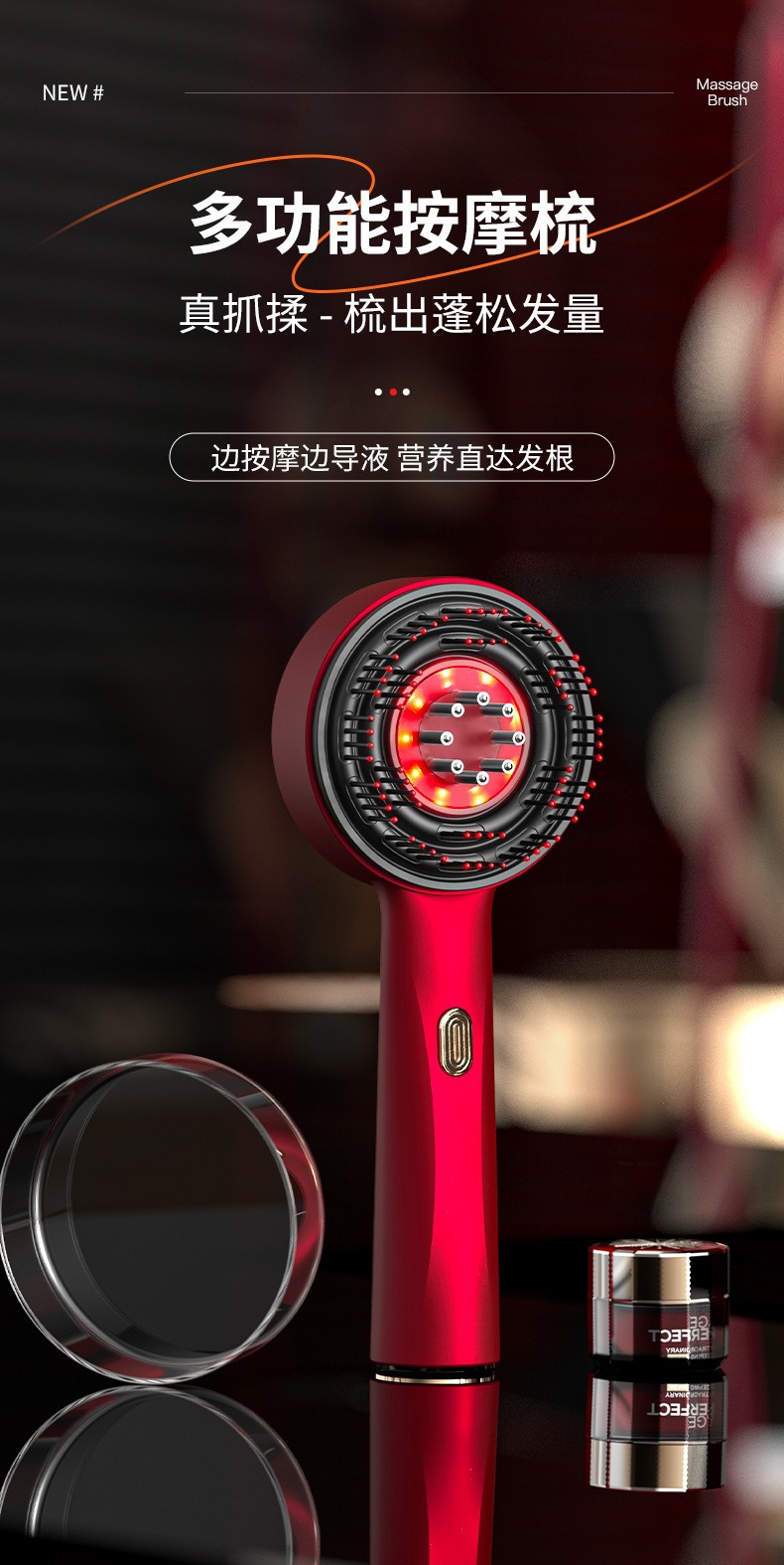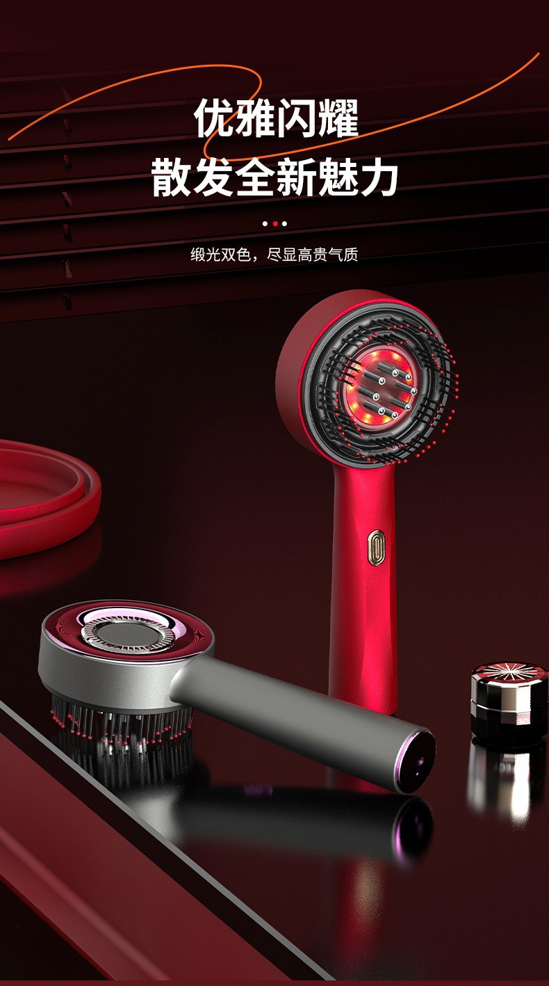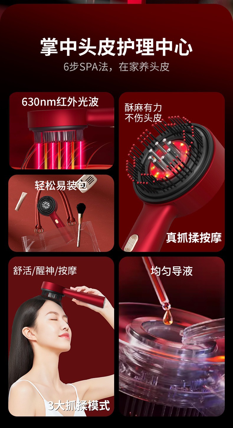 Электрическая расческа для массажа кожи головы, домашняя расческа для ухода за волосами, устройство для стимуляции роста волос с функцией разминания и направления жидкости, расческа для ухода за волосами с красным светом, массажер для кожи головы