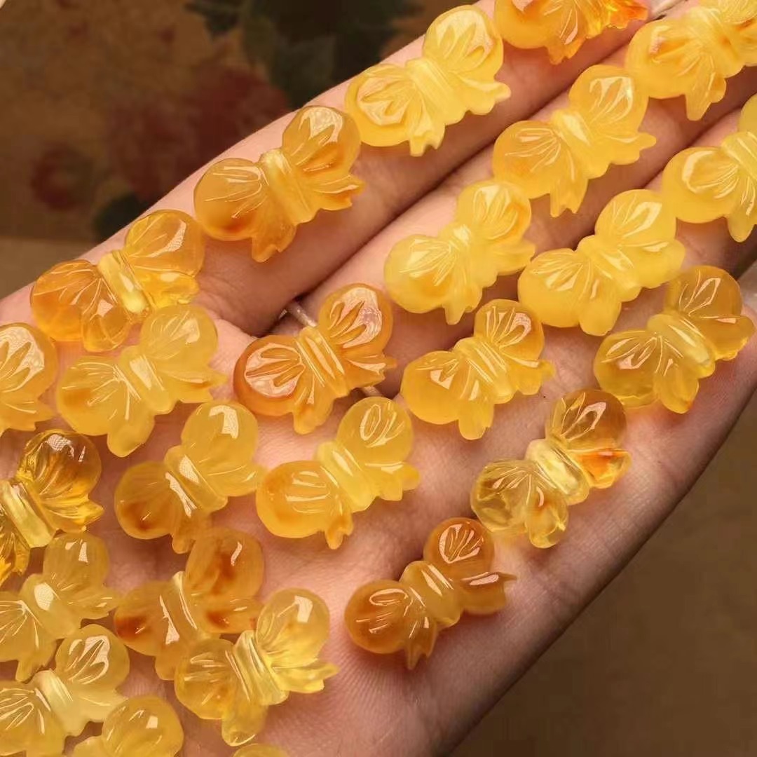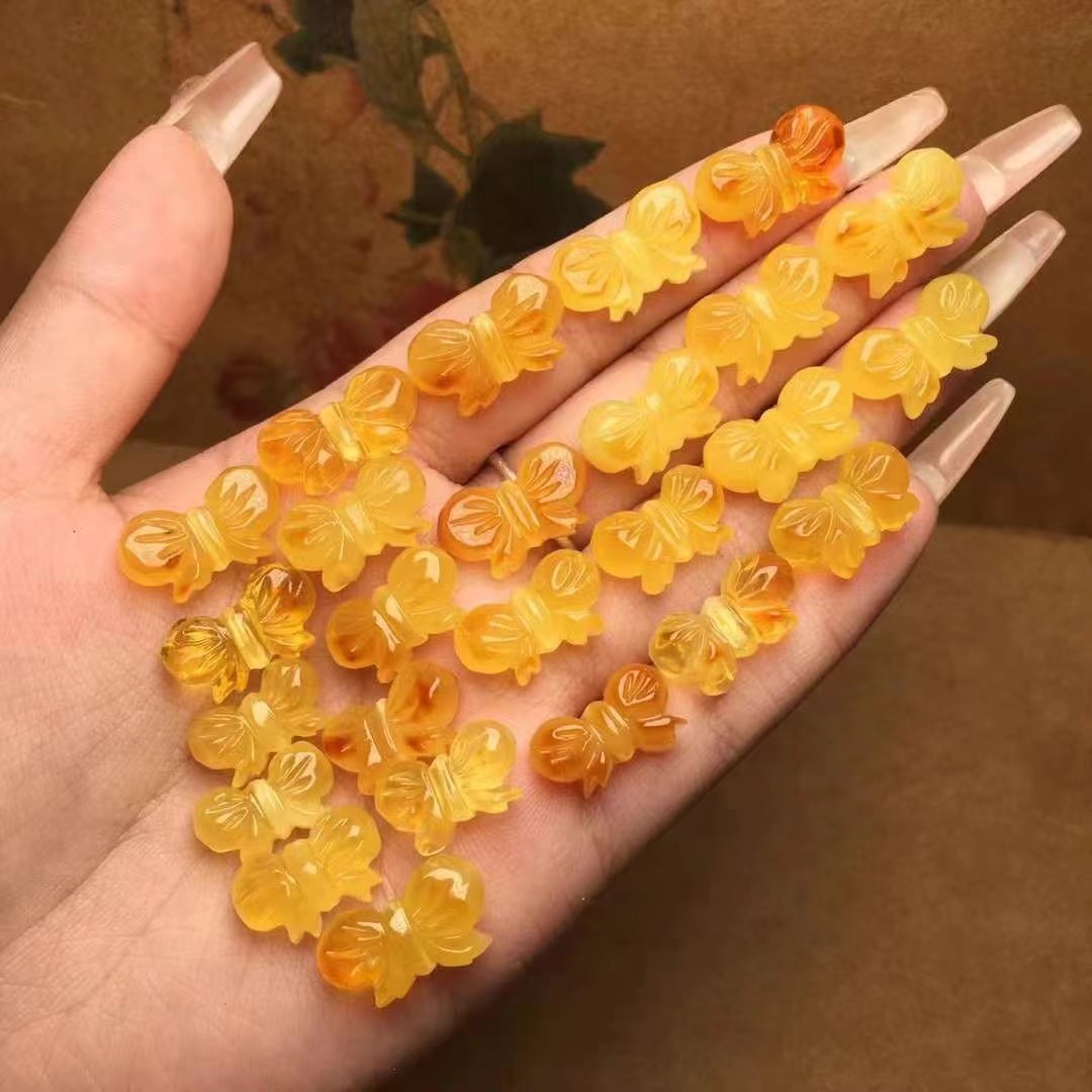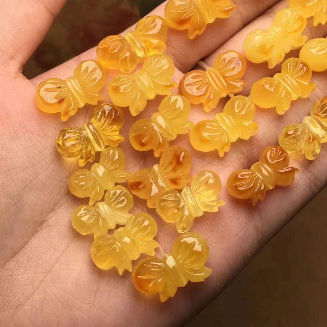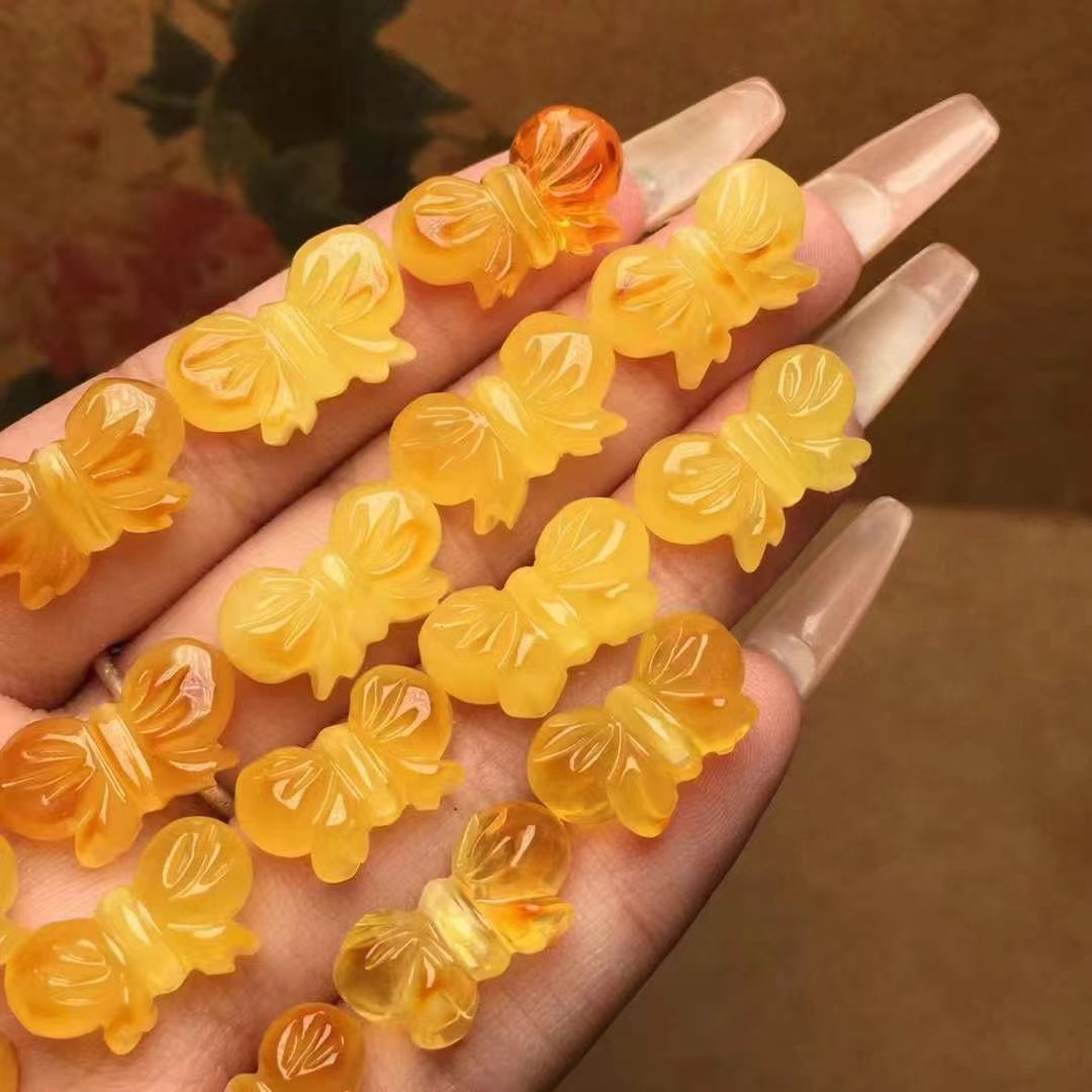 【品名】天然蜜蜡雕刻蝴蝶结配饰
