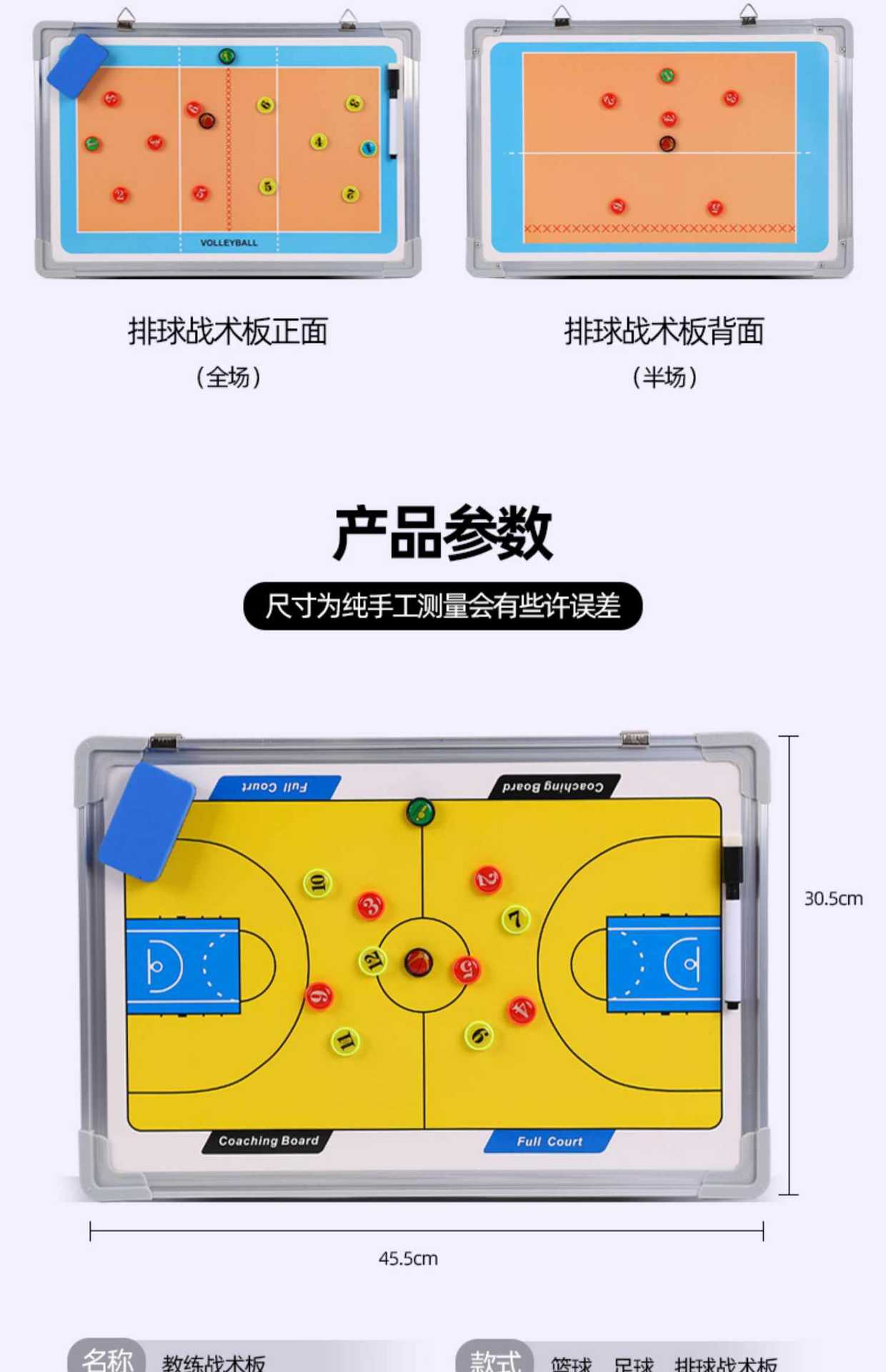 Маленький размер (тактическая доска для футбола); Маленький размер (тактическая доска зеленого футбола); Футбольная тактическая доска (набор 1); Волейбольная тактическая доска (комплект 1); Баскетбольная тактическая доска с желтым фоном (комплект 1); Напольная тактическая доска для баскетбола (комплект 1); Тактическая доска футбольного белого фона (комплект 1); Футбольная тактическая доска (набор 2); Футбольная тактическая доска белого фона (комплект 2); Волейбольная тактическая доска (комплект 2); Баскетбольная тактическая доска с желтым фоном (комплект 2); Напольная синяя баскетбольная тактическая доска (набор 2); Комплект подставок (тактическая доска для футбола); Комплект подставок (футбольная + тактическая доска для баскетбола); Набор подставок (тактическая доска для травяного футбола)