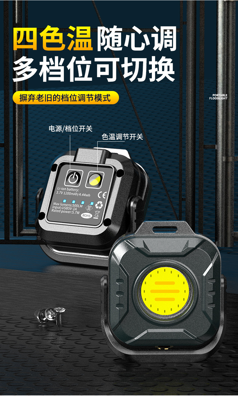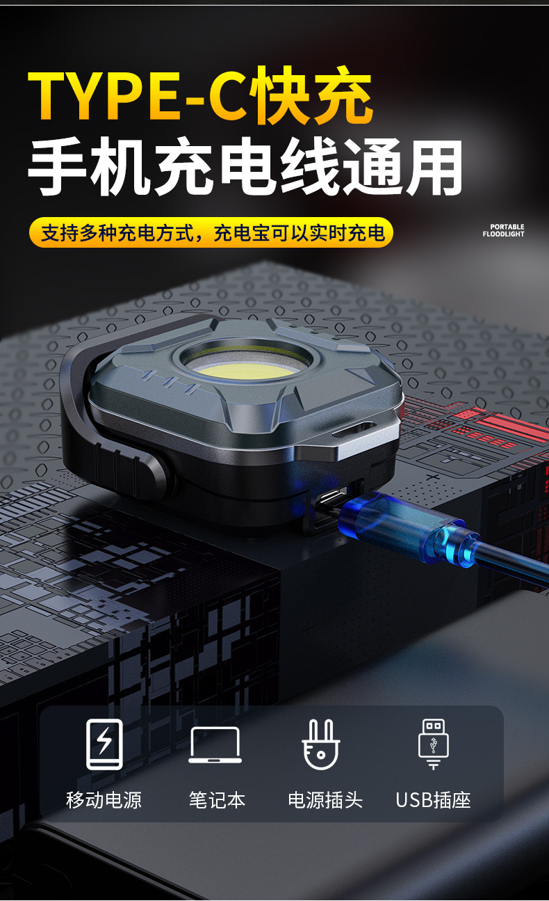 Трансграничный новый светодиодный рабочий свет Type-C Заряженный открытый магнитный всасывающий кемпинг многофункциональный ремонт портативный рабочий свет