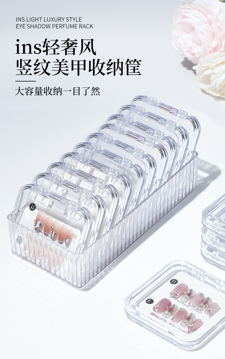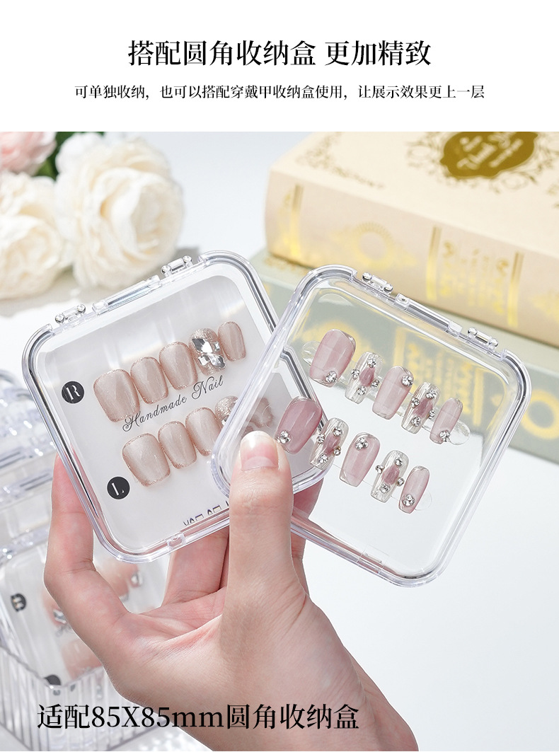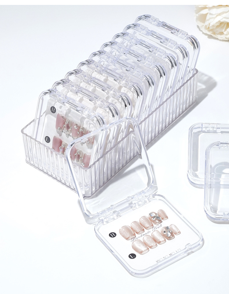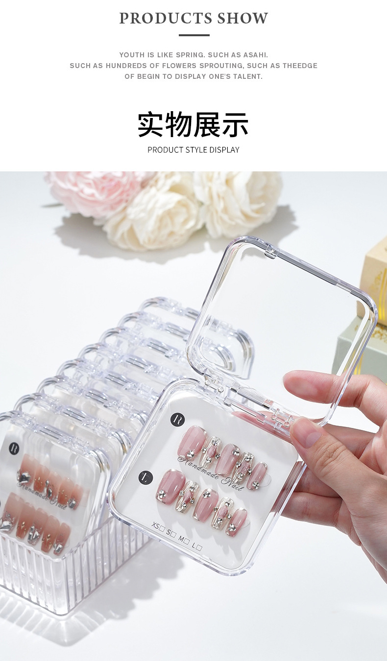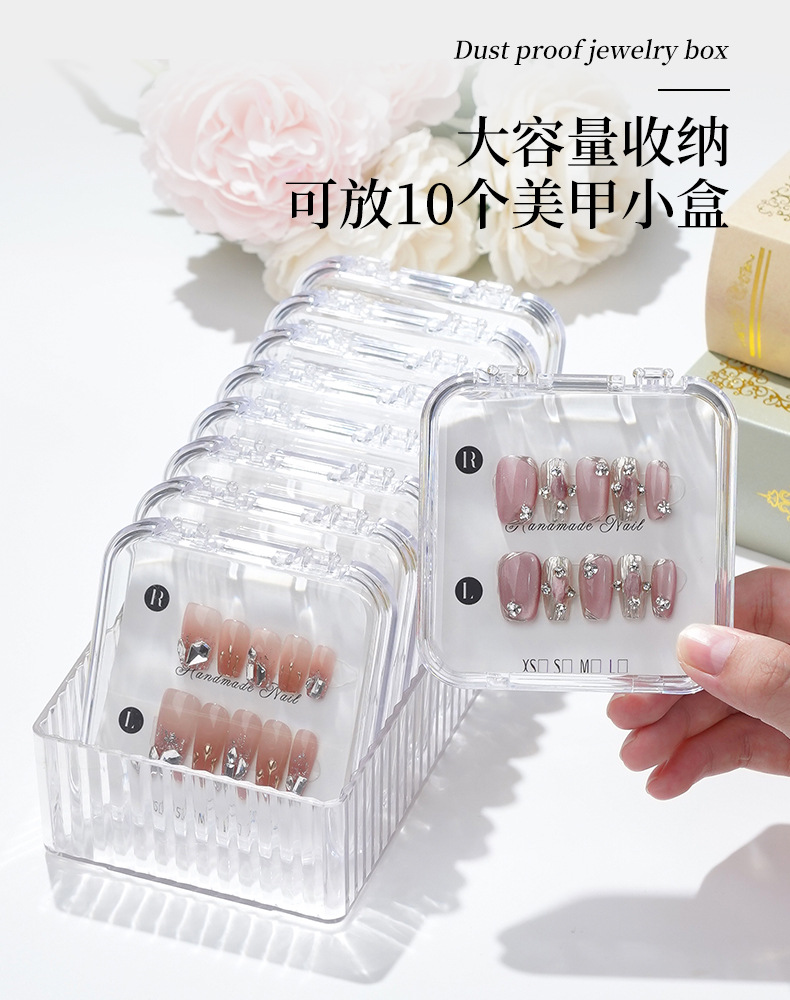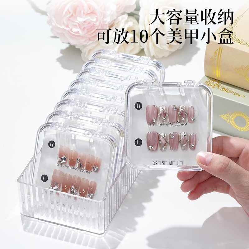 Ящик для хранения, прозрачный маникюрный компактный носимый ящик для ногтей, ящик для хранения ногтей ручной работы, упаковочная коробка, готовый ящик для демонстрации ногтей