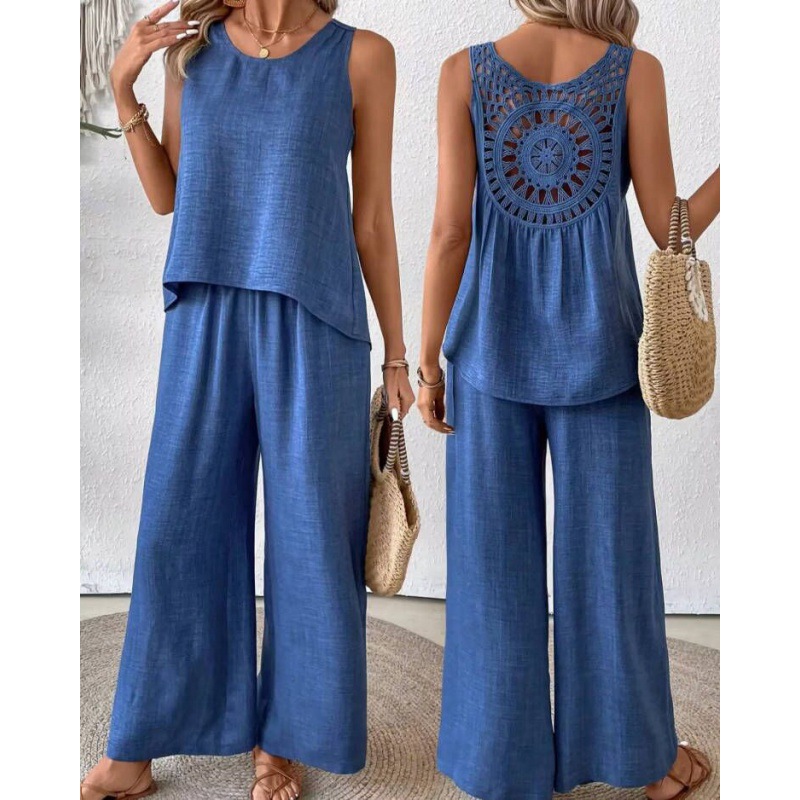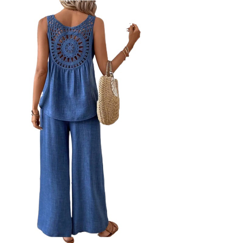 Амазонка 2024 AliExpress Европа и США новый сплошной цвет спинки с полым кружевным костюмом женский