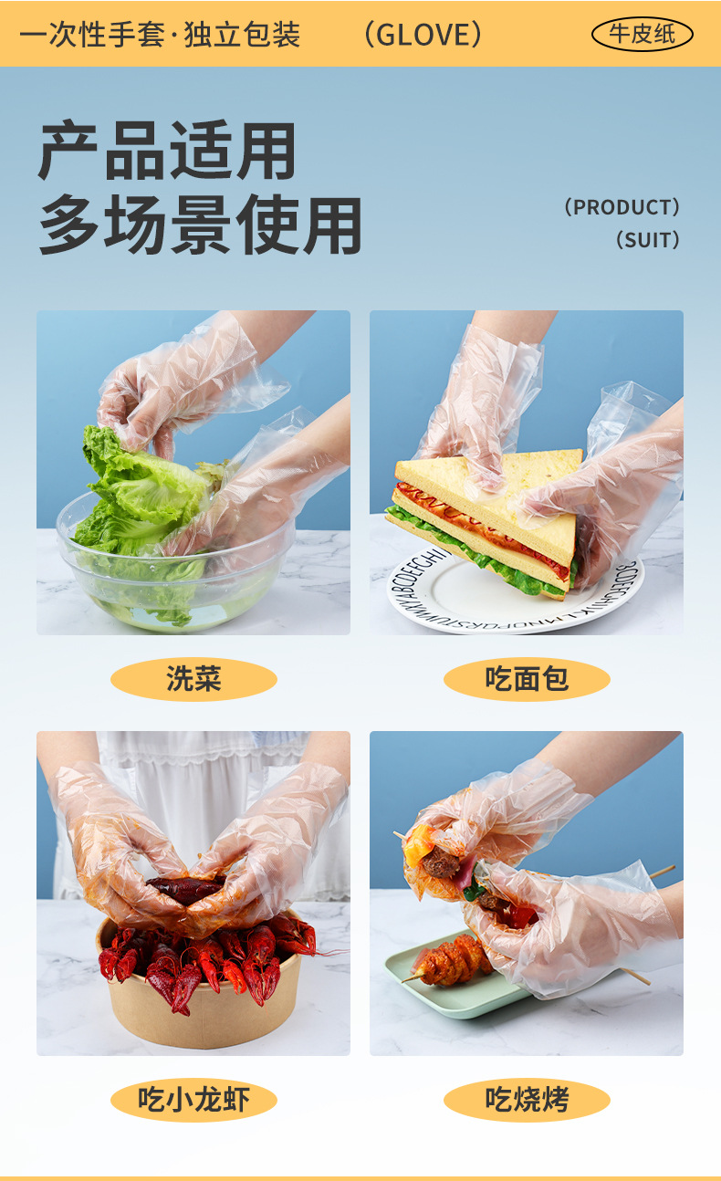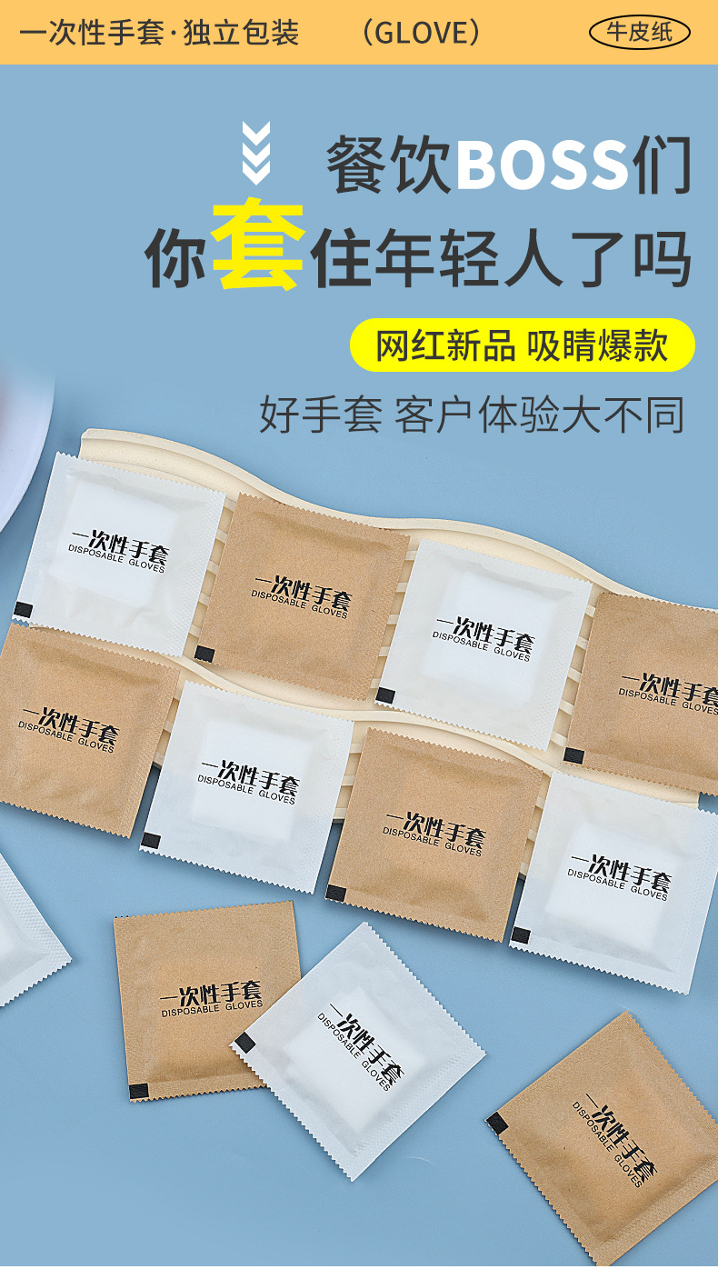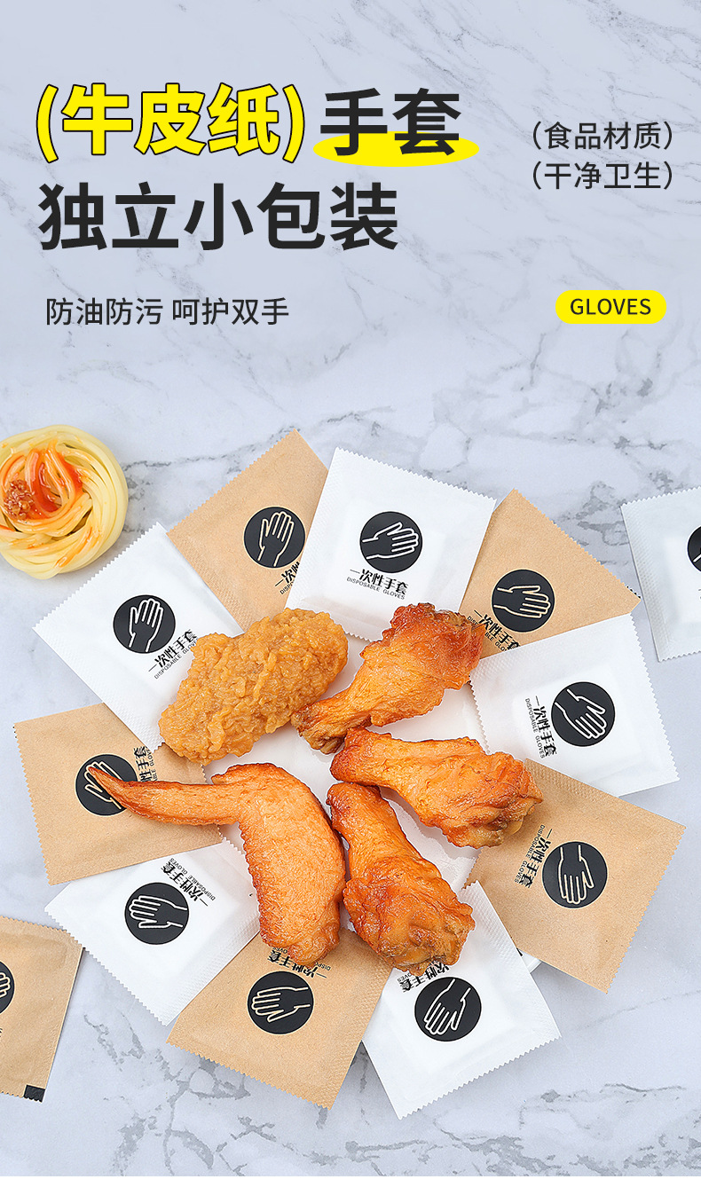 Одноразовые перчатки Независимая крафт-бумага упаковка пищевой еды на вынос жареная курица лобстер пластиковые перчатки