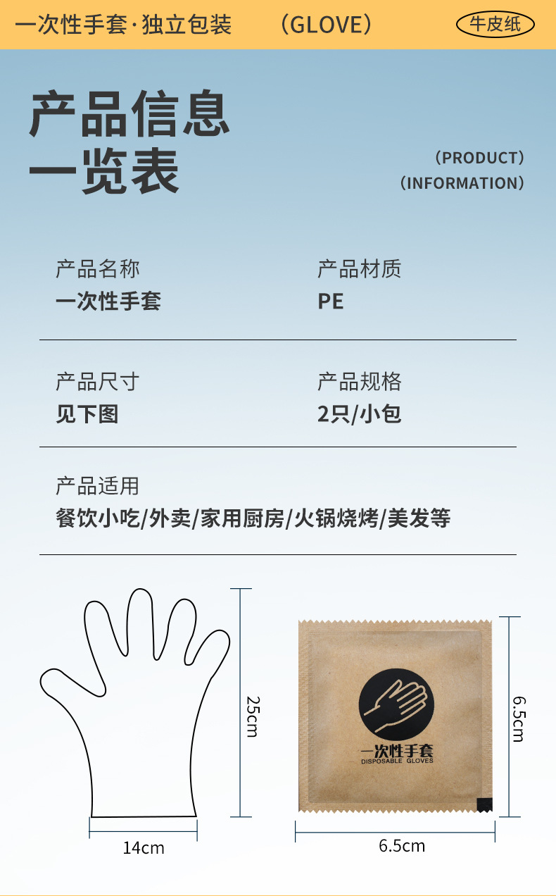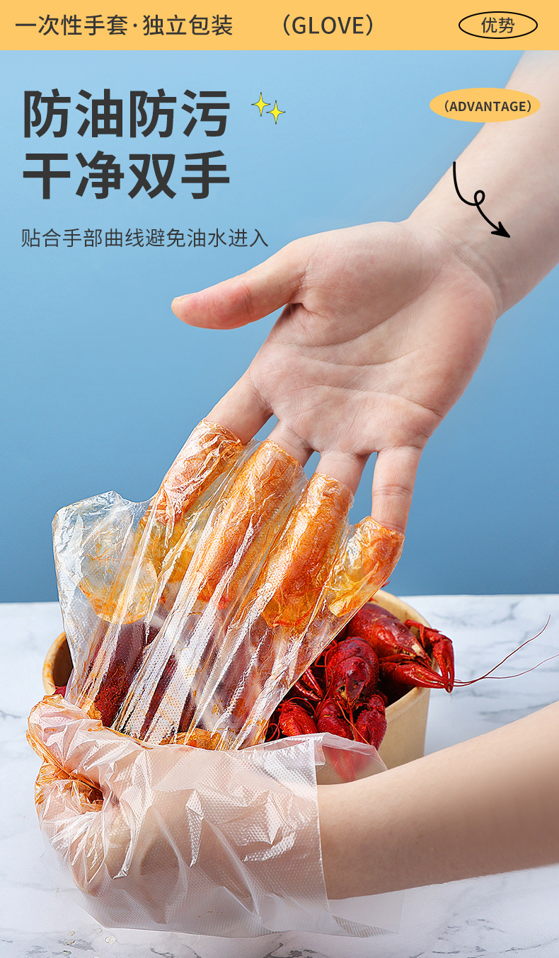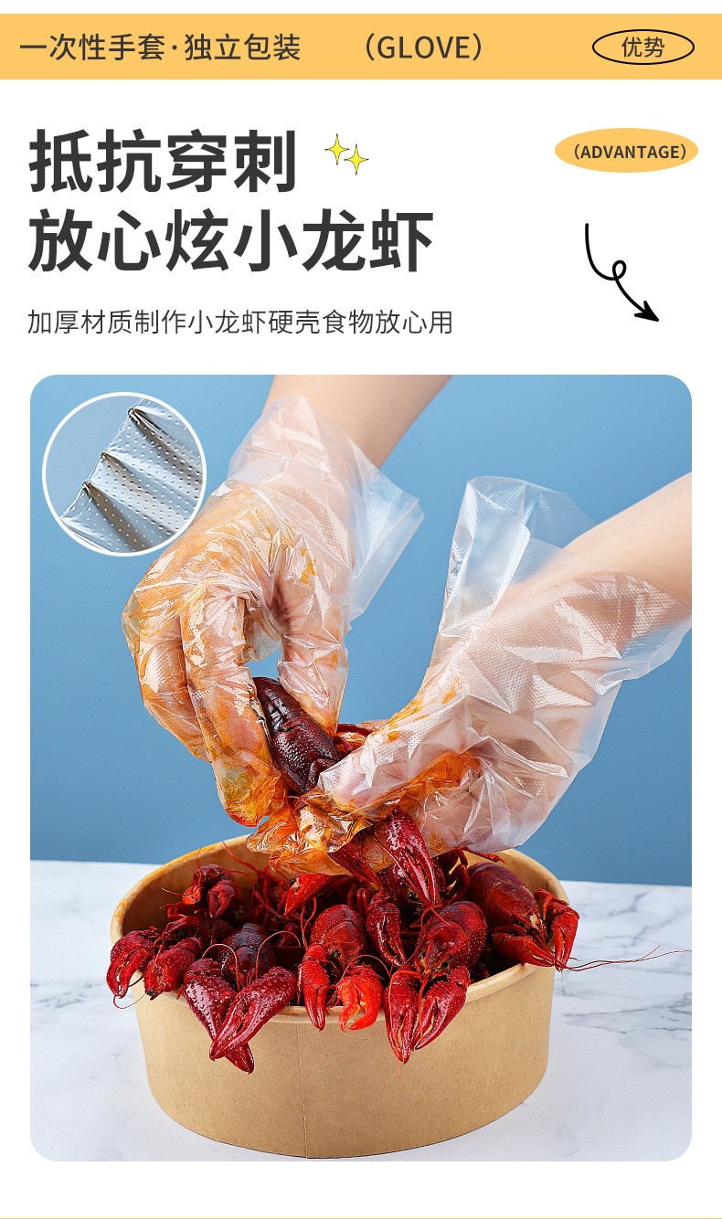 Одноразовые перчатки Независимая крафт-бумага упаковка пищевой еды на вынос жареная курица лобстер пластиковые перчатки
