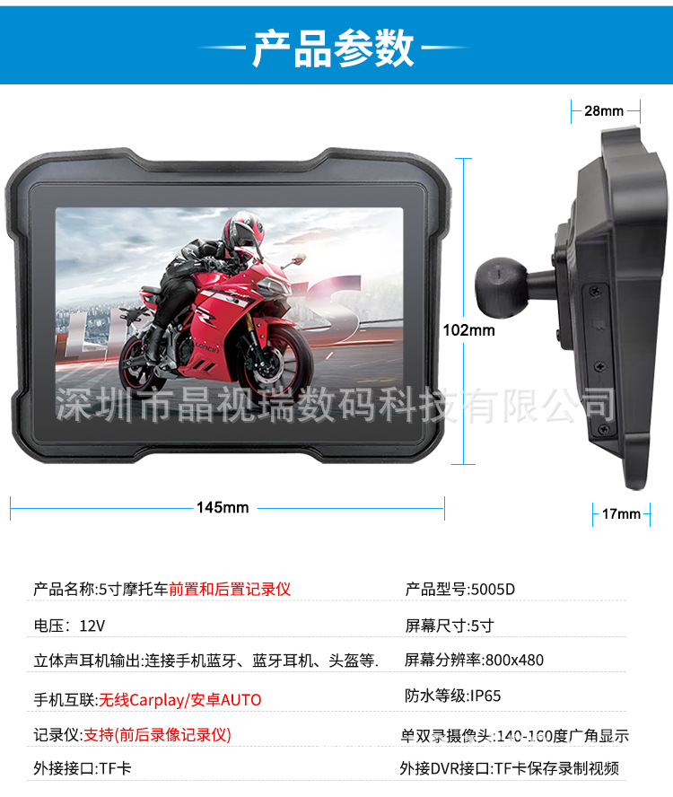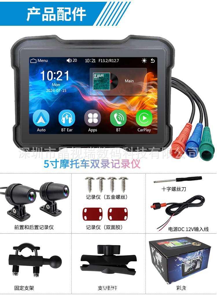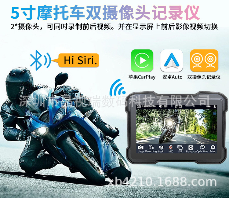 5-дюймовый мотоцикл рекордер беспроводной carplay навигация водонепроницаемая езда на открытом воздухе HD портативный все в одном