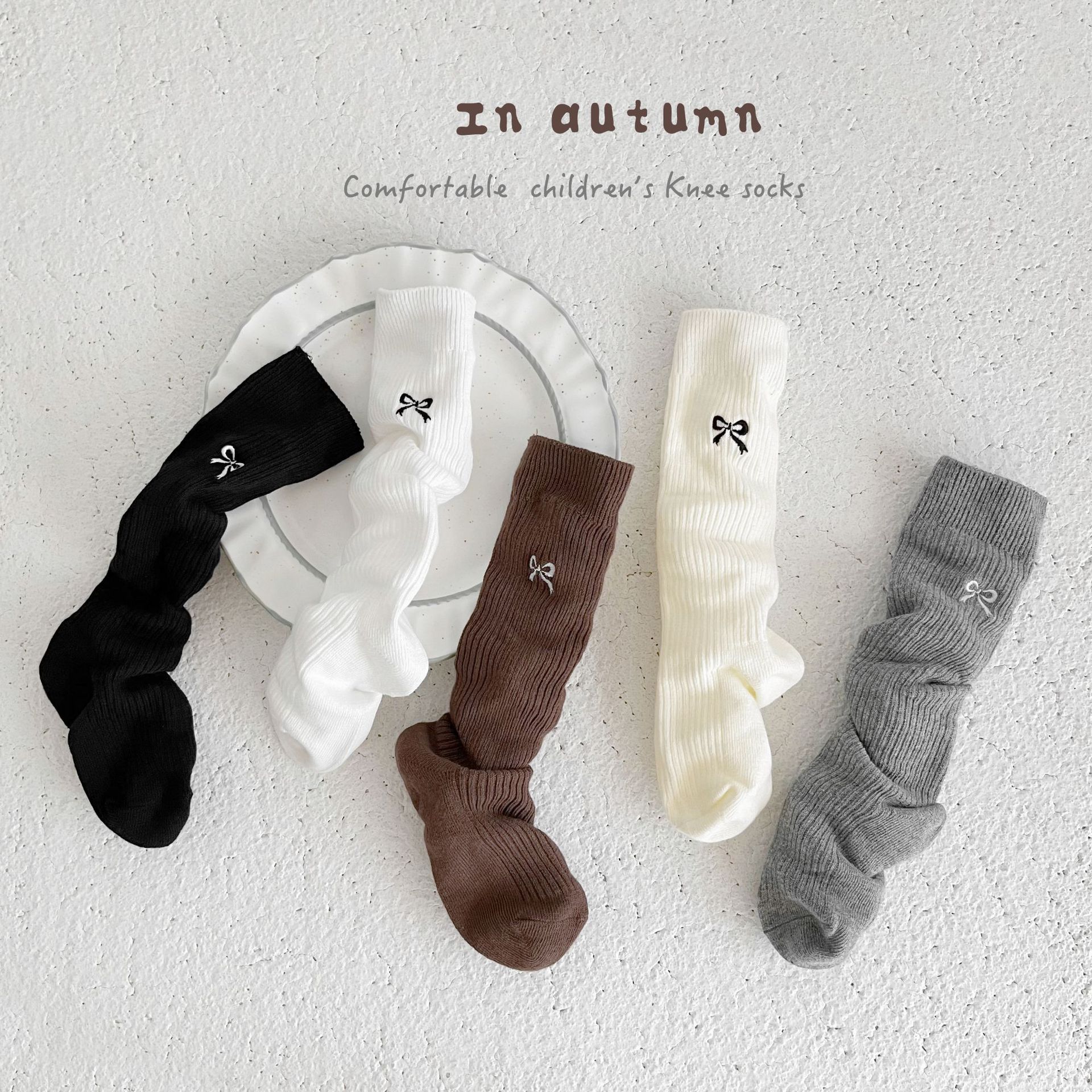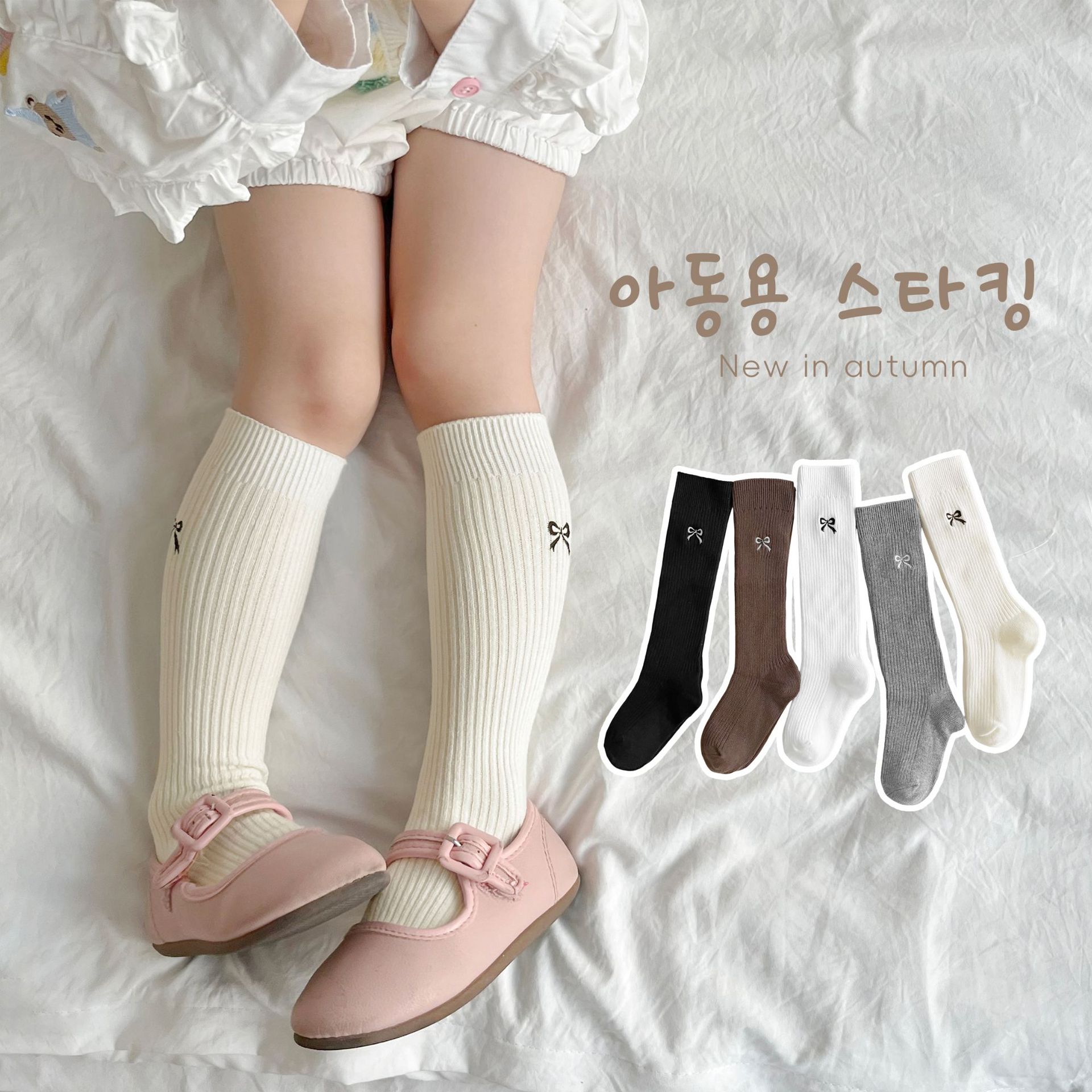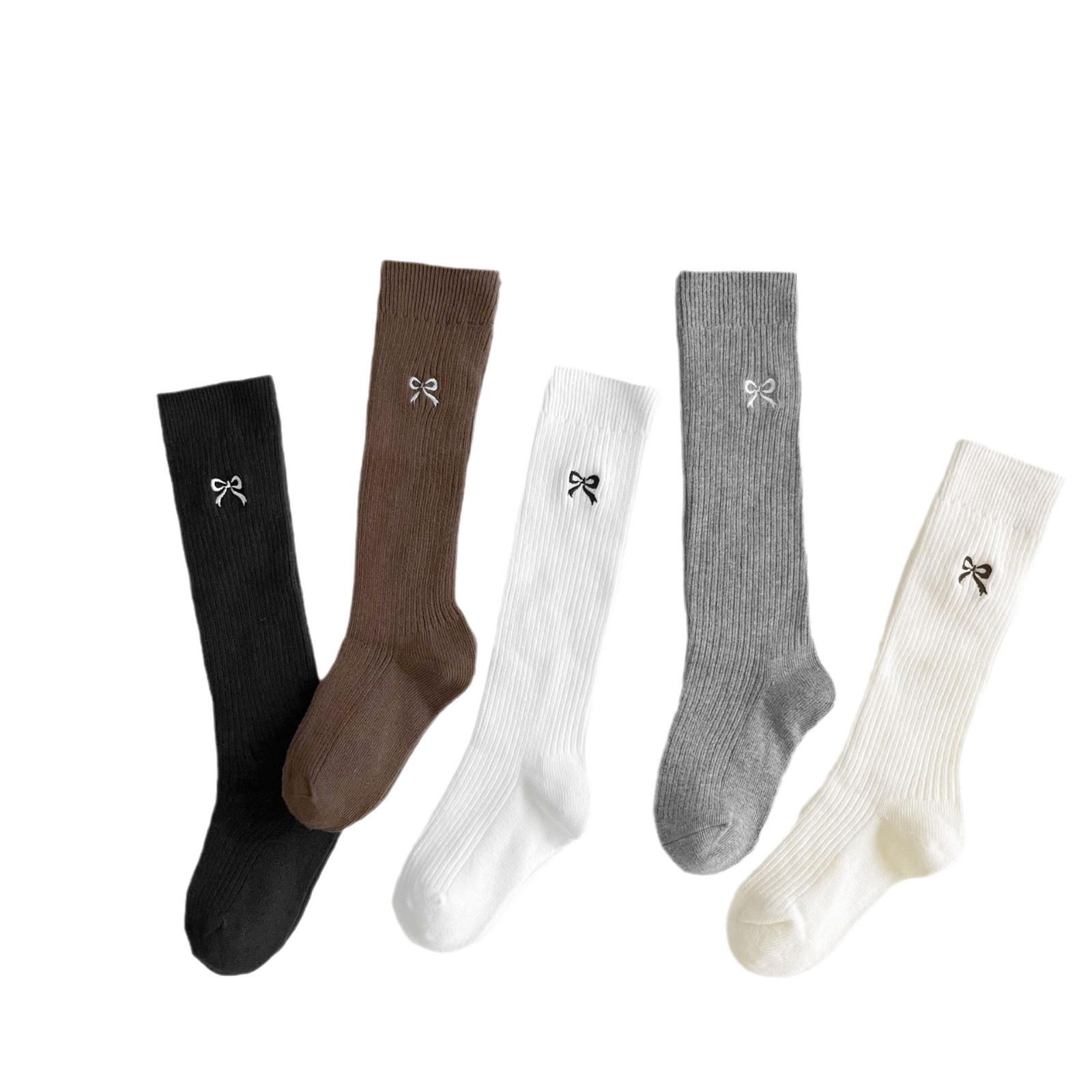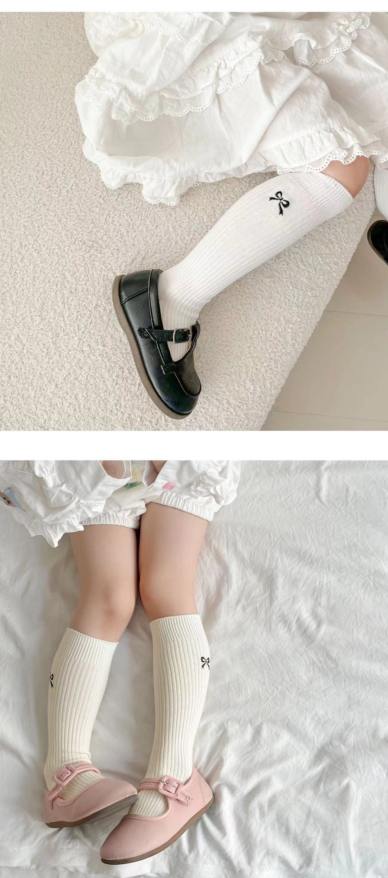 Детские носки, осенне-зимние утолщенные носки для девочек в корейском стиле с вышитым бантом, длинные хлопковые носки в стиле Лолиты с двойной иглой