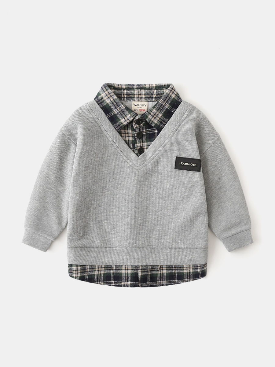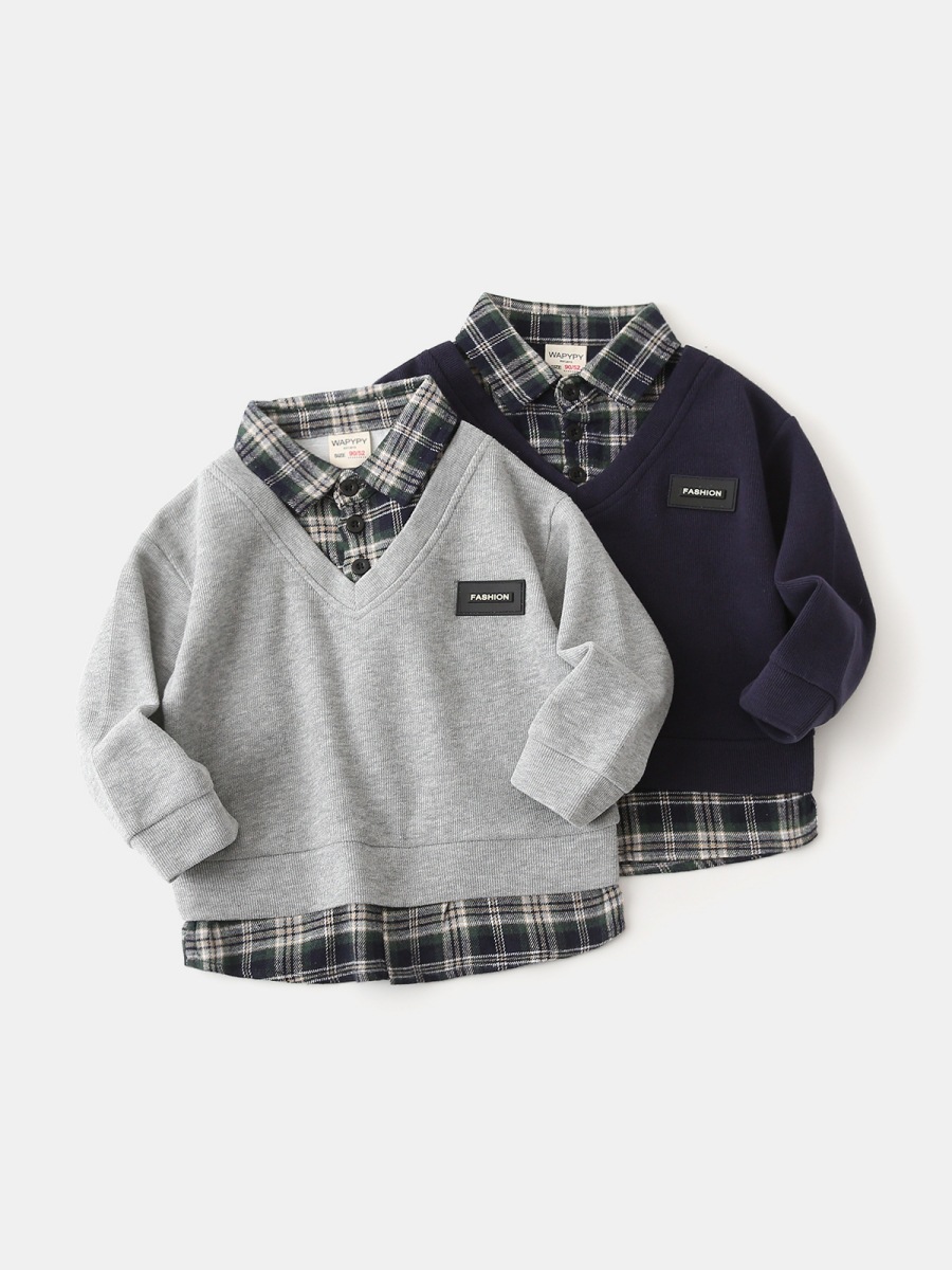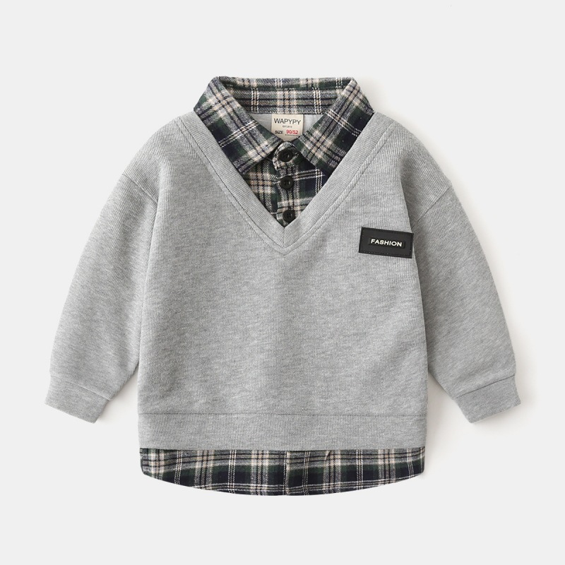 Детская поддельная толстовка из двух частей, оптовая продажа, новинка 2025 года, корейский стиль, детская рубашка для мальчиков, толстовка с воротником, Прямая доставка