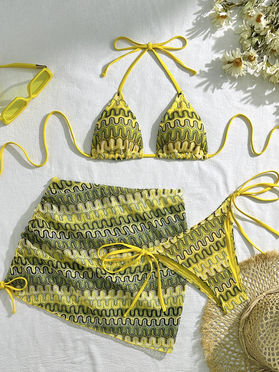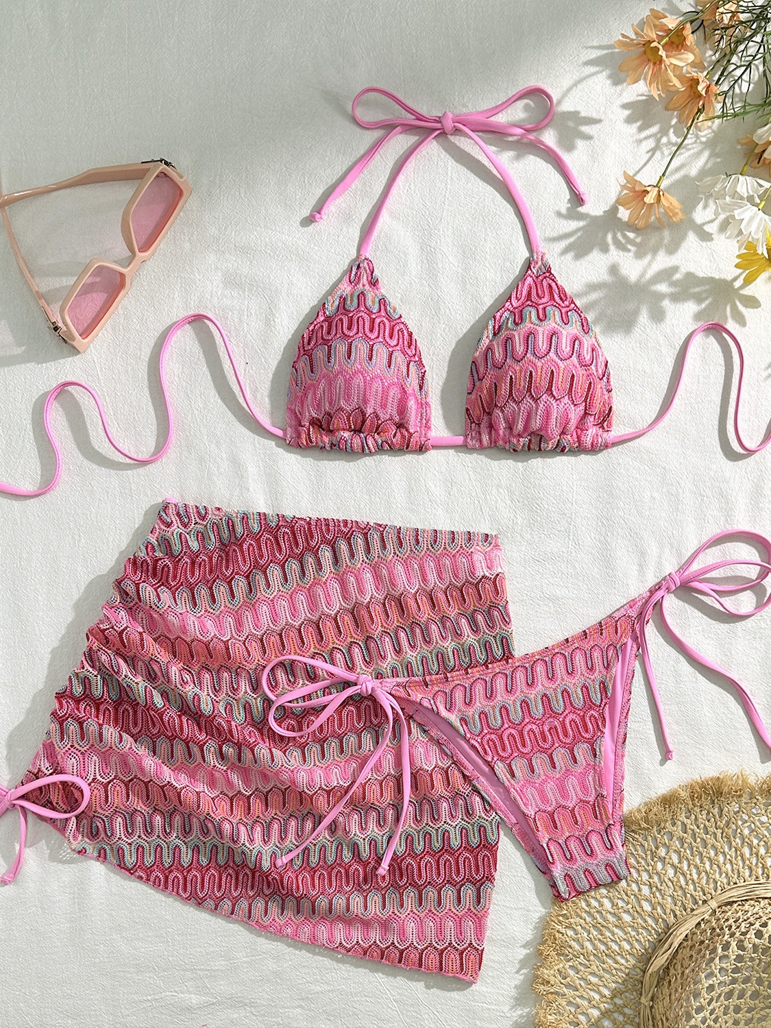 2025 Европейский и американский новый стиль вышитый градиентный сексуальный трехкомпонентный купальник бикини для трансграничной экспорта