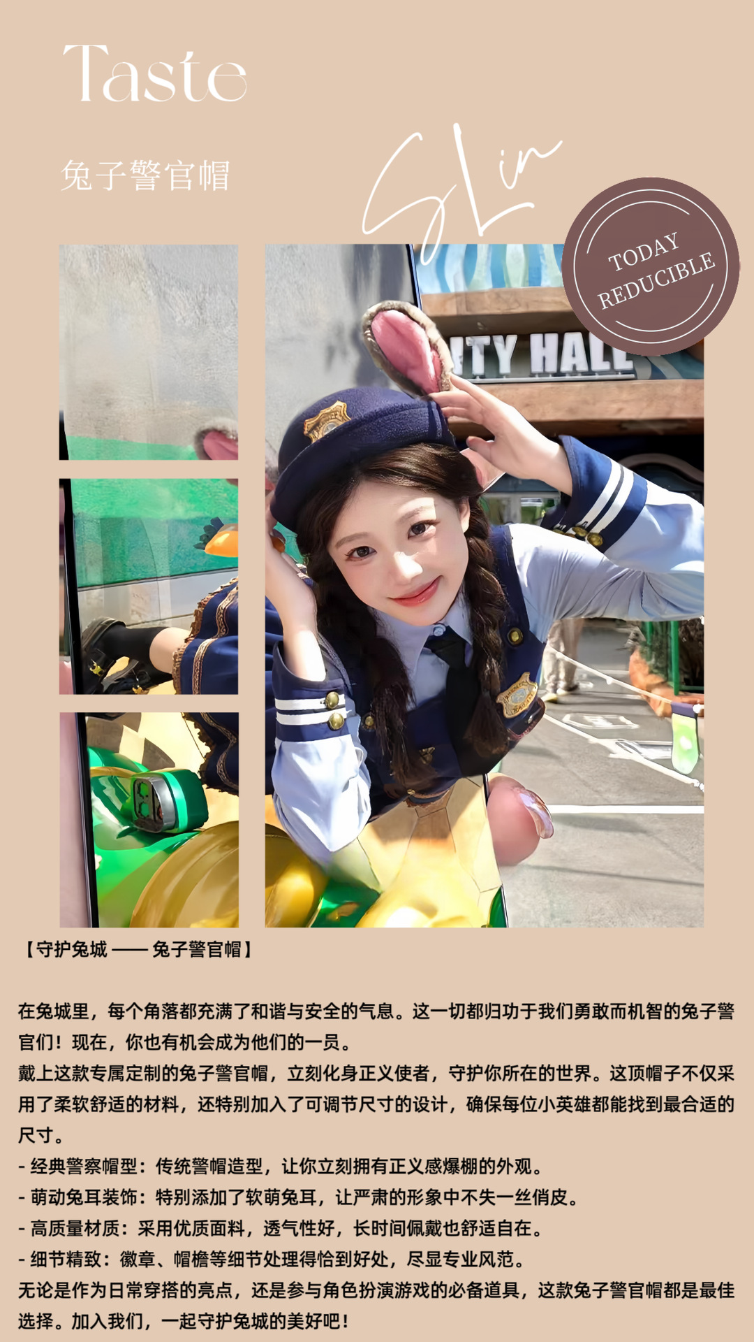 Шпилька для шляпы полицейского; Шляпа полицейского ~ 54 см.; Шляпа полицейского ~ 57 см.; Игла для подвешивания куклы; Повязка на голову полицейского~1; офисный пистолет; Кролик Полицейская морковная шапка ~ 54 см; Морковная шляпа полицейского ~ 57 см; Полицейская повязка на голову с морковью; Полицейская заколка; офицерский ремень; Хвост из мехового шара полицейского; Галстук-офицер кролика; Полицейская ковбойская шляпа (для взрослых); Полицейская повязка на голову с кроликом и морковью; Повязка на голову с изображением кролика и лисы; Носки кролика-полицейского; Шляпа полицейского Кролика (Ник)-54; Шляпа офицера Кролика (Ник)-57; Джуди Кролик Уши-1; Джуди Кролик Уши-2