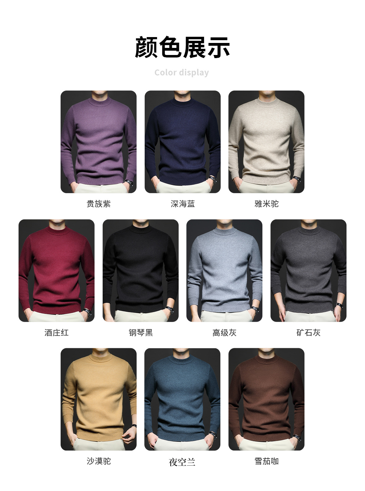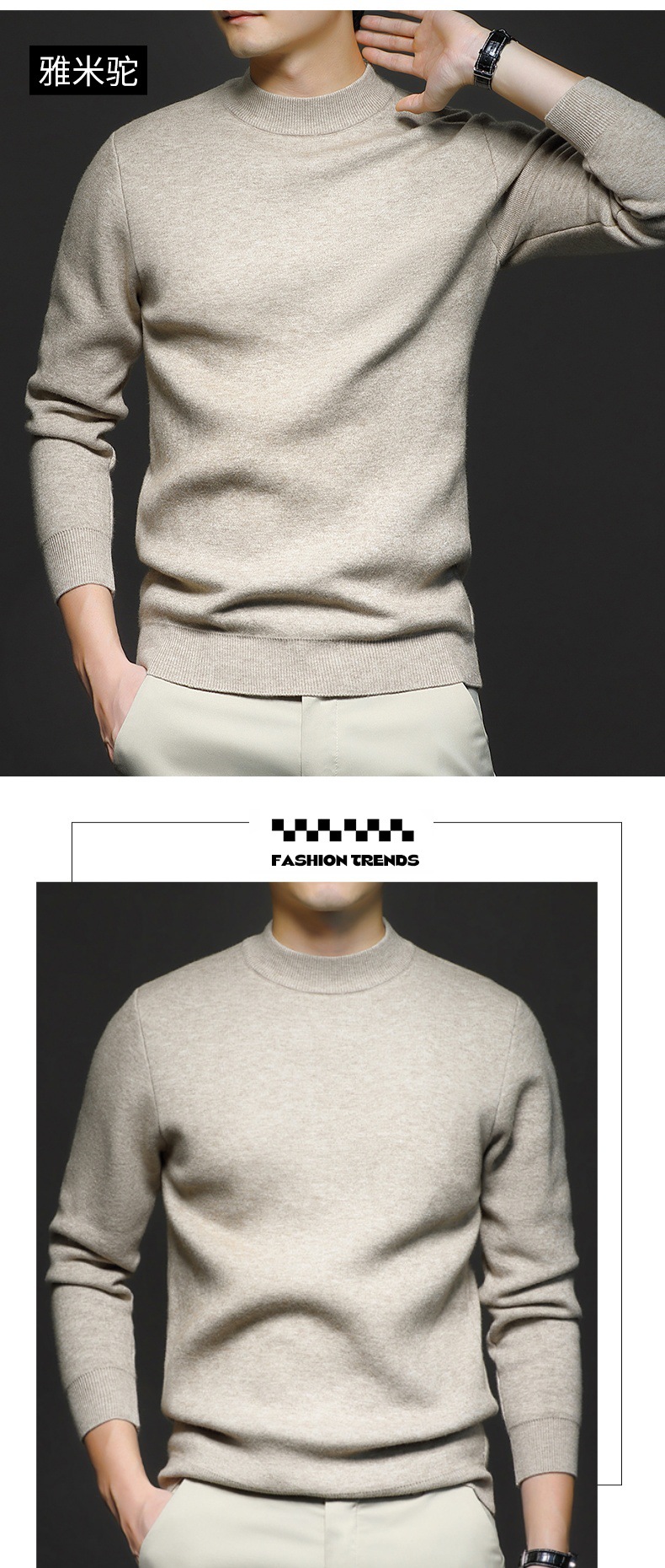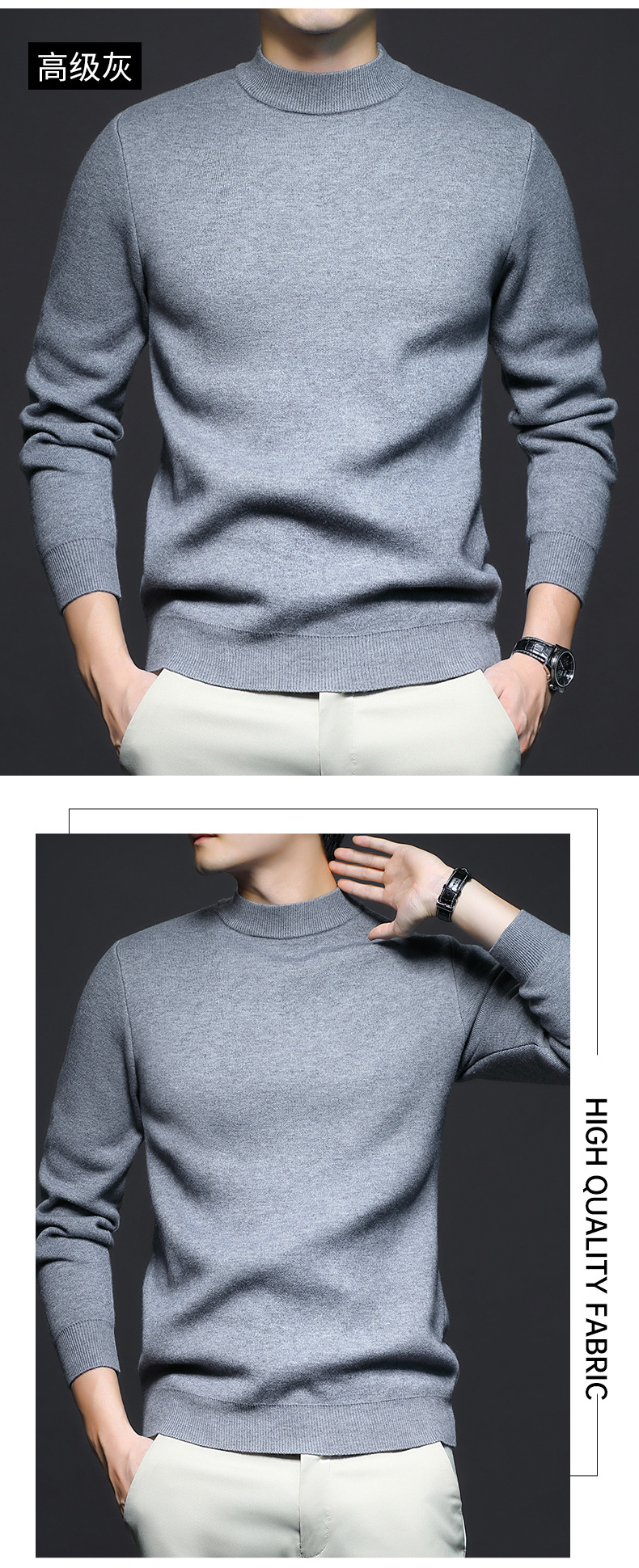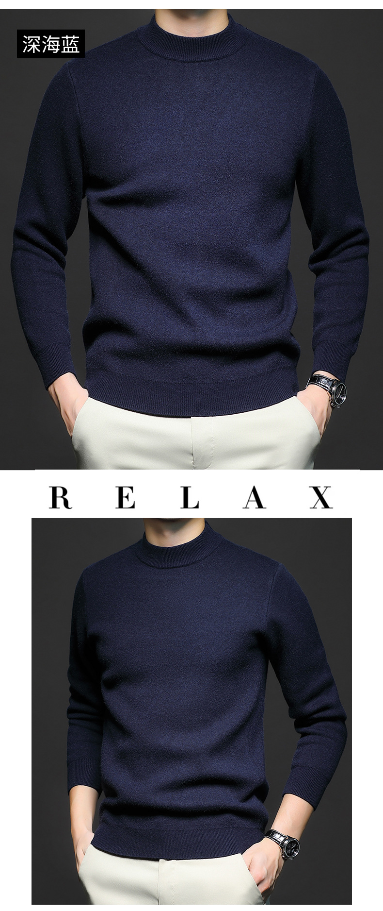 Новый стиль осенний и зимний мужской свитер сплошной цвет анти-шарик камвольный свитер вязаный свитер с длинными рукавами и полуводолазкой мужской костюм