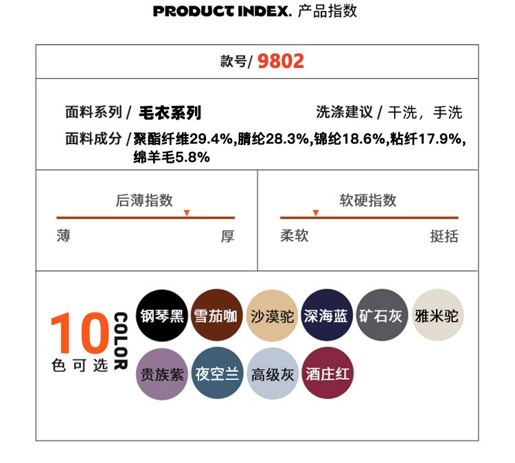 Благородный фиолетовый; Глубокое море синий; Ями верблюд; Винодельня красная; Пианино черный; Старший серый; Рудная зола; Пустынный верблюд; Ночное небо синий; Сигарный кофе