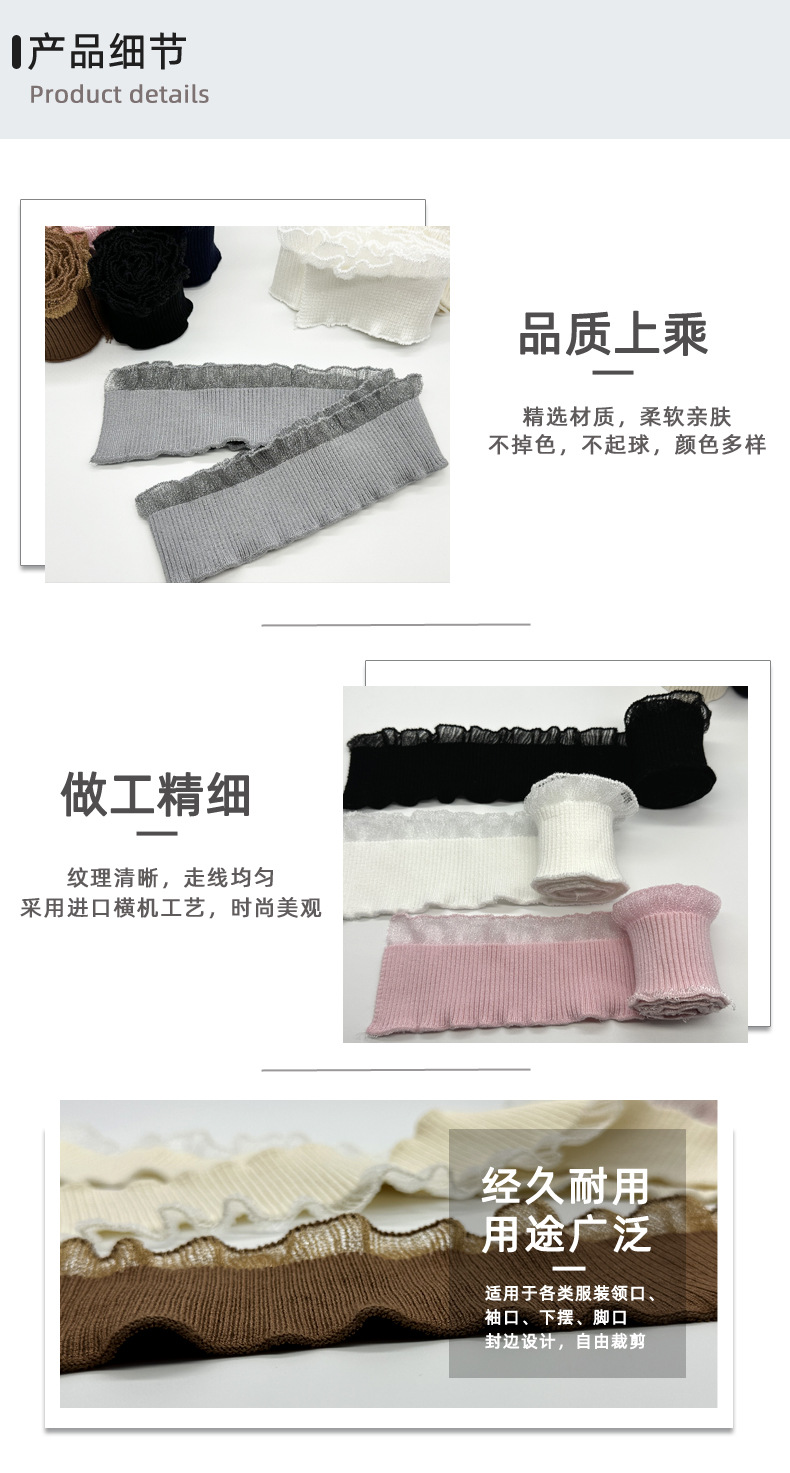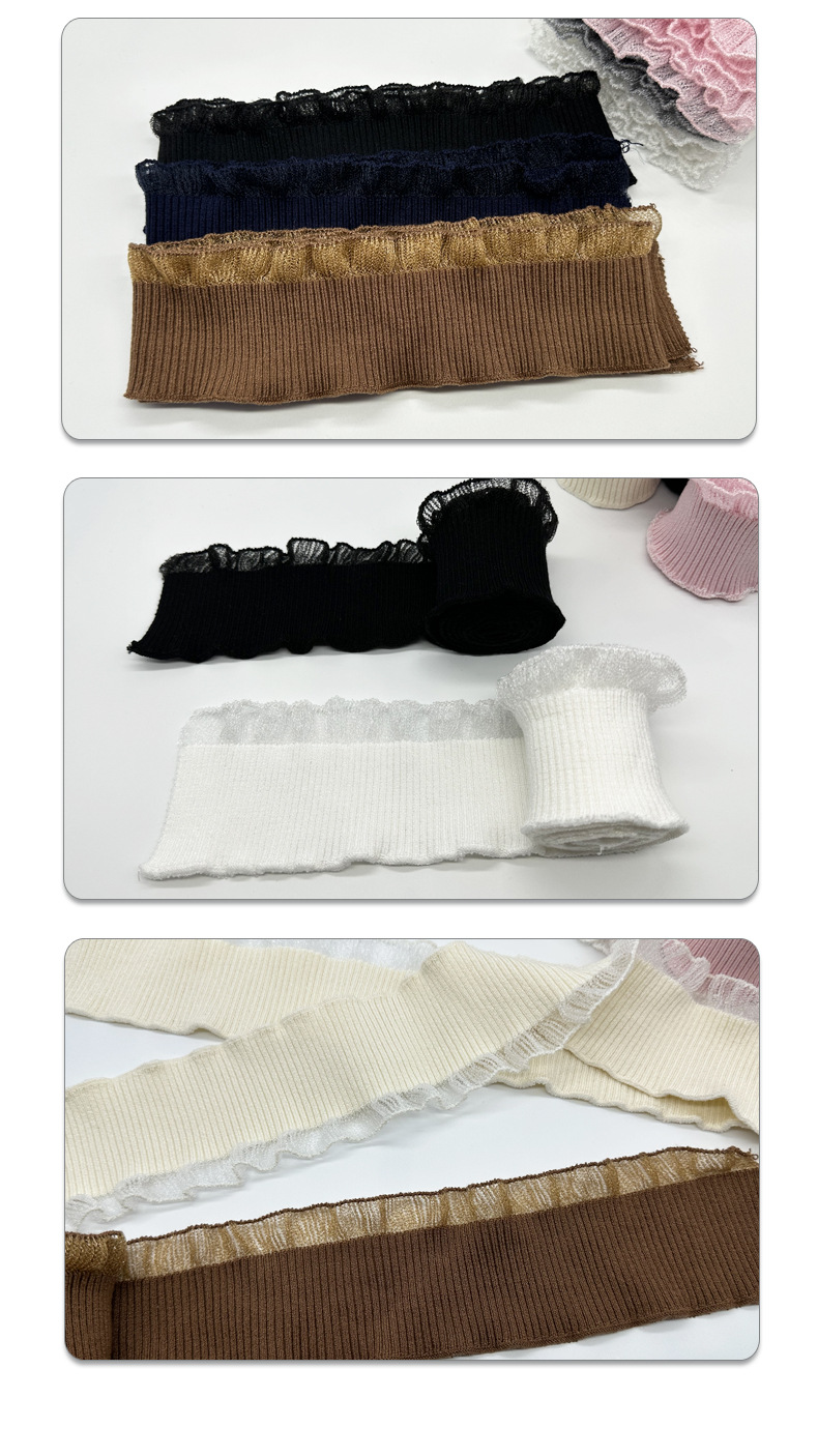 Ребристая манжета, воротник, подоло, брюки, деревянные уши, листья, европейская вуаль, горизонтальный ребристая одежда, кружева, одежда