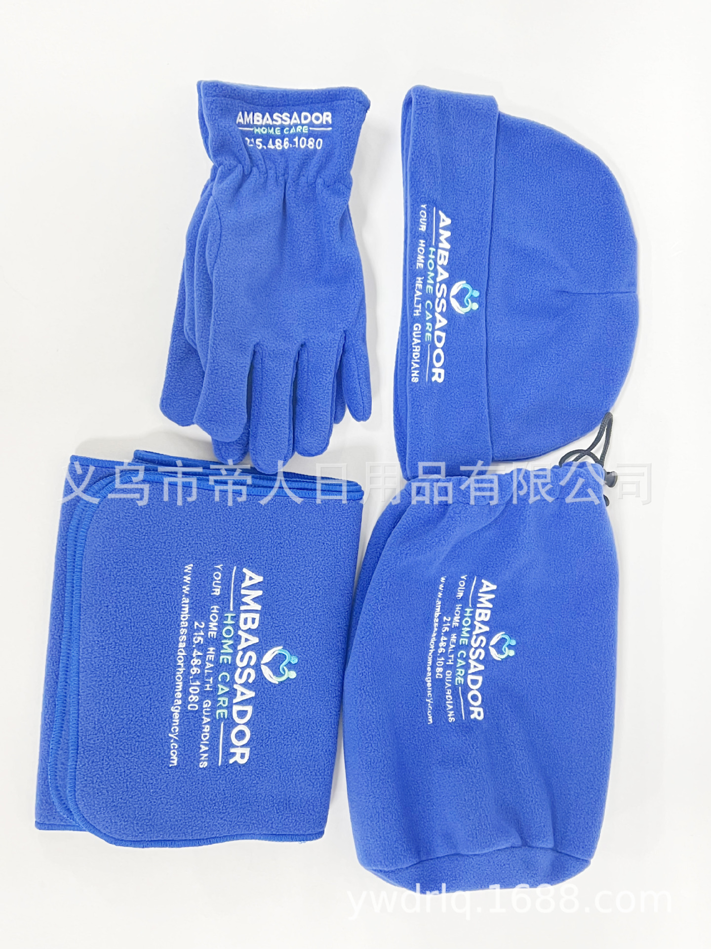 Индивидуальный зимний теплый комплект из флисовой шапки, флисового шарфа и флисовых перчаток с логотипом на заказ