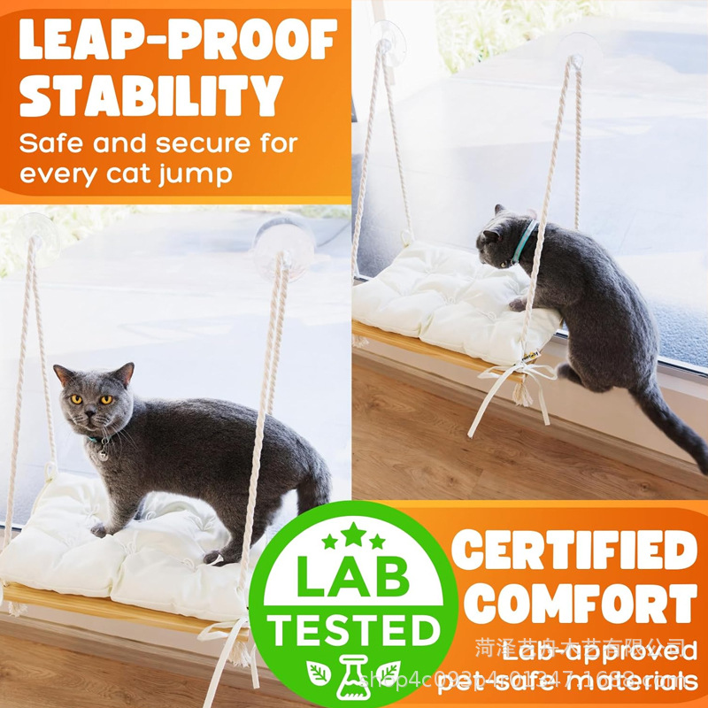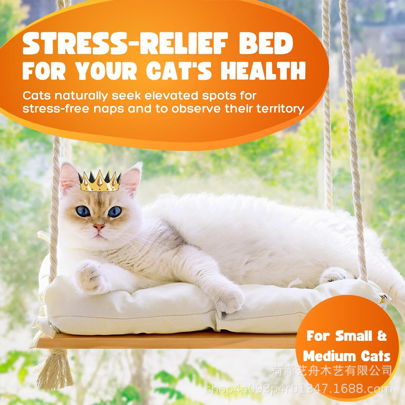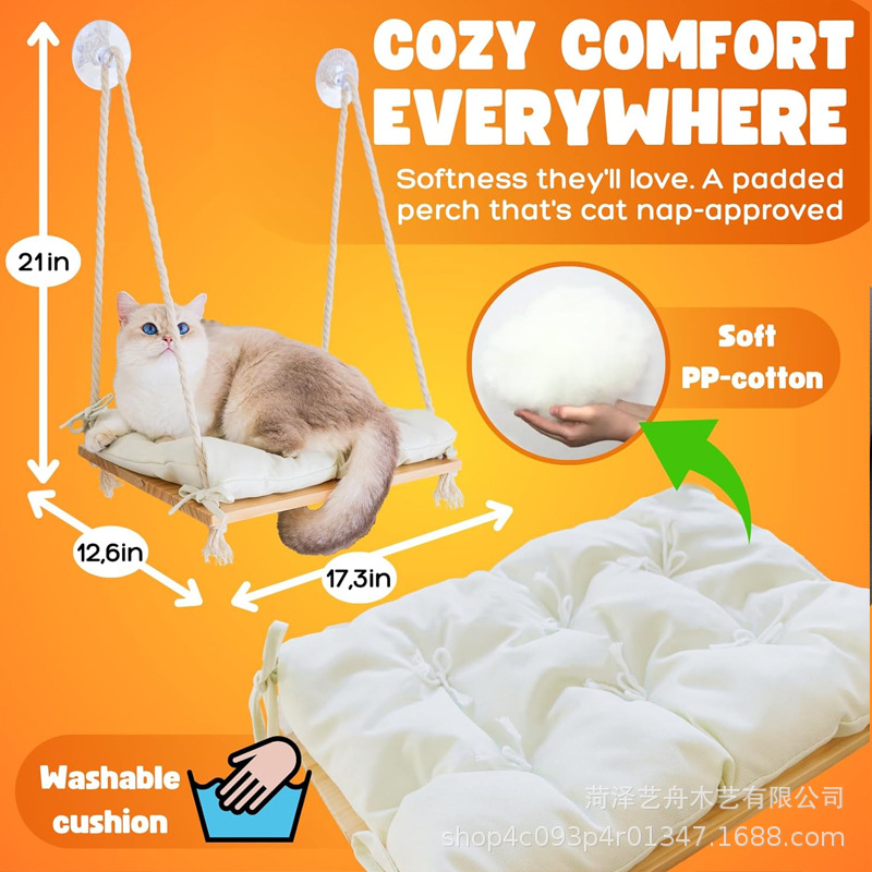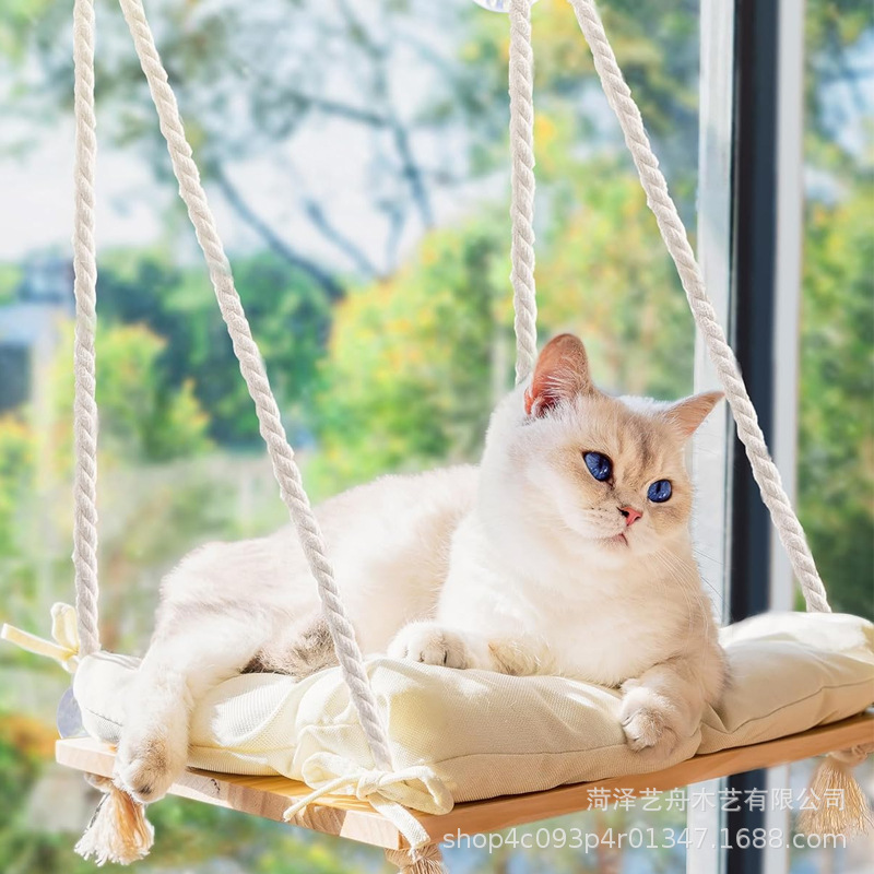 Кошачье окно Среда обитания Деревянный кошачий гамак Подоконный подкат Кошачье гнездо Деревянные качели Кошки Универсальные четыре сезона