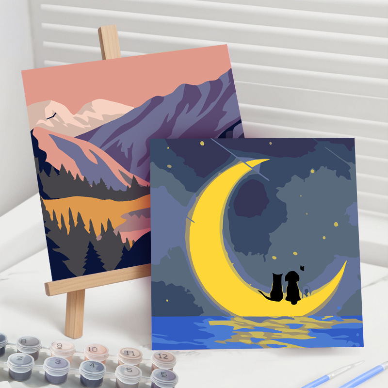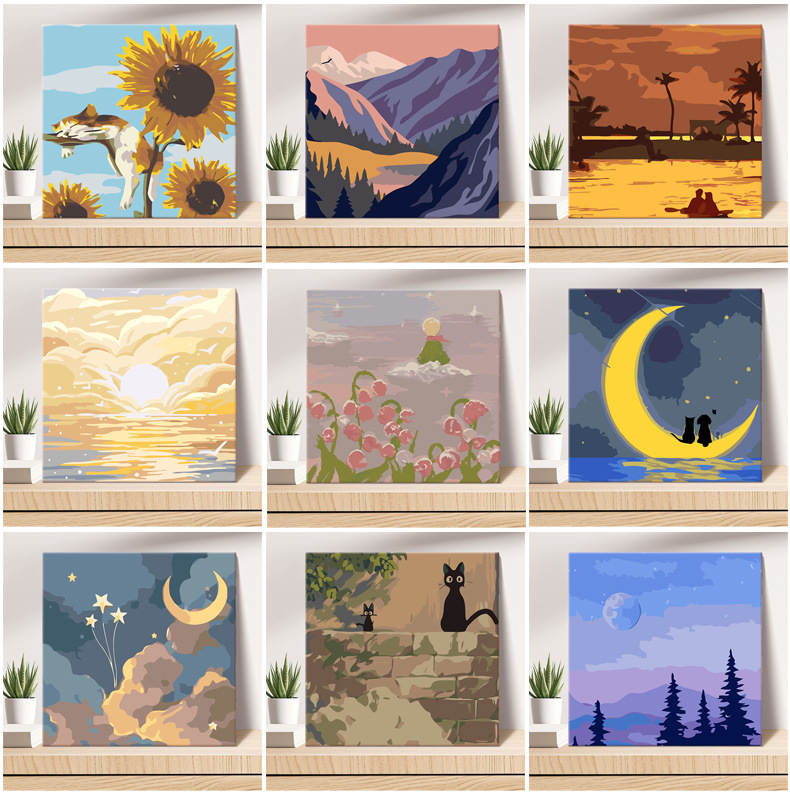 Цифровая картина-раскраска «Пейзаж» для детей, акриловая, в рамке, оптом, в наличии