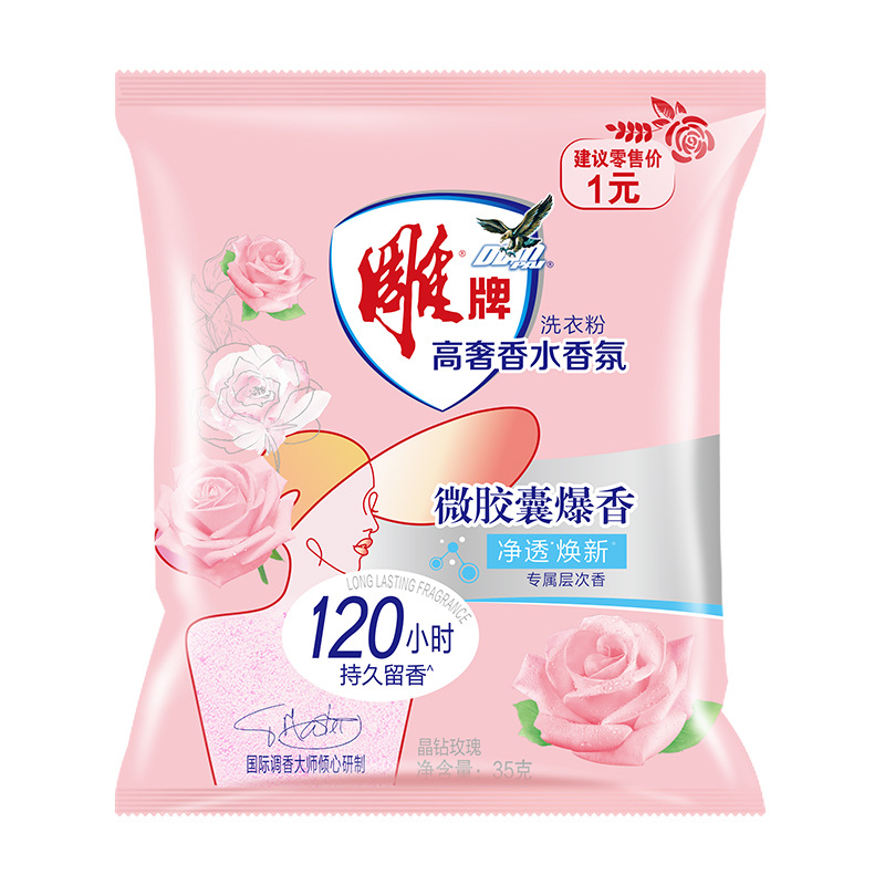 35 г высококачественного стирального порошка Diao с роскошным парфюмерным ароматом, стойкий аромат, дорожный формат, подходит для отелей, гостевых домов и домашнего использования, аромат розы.