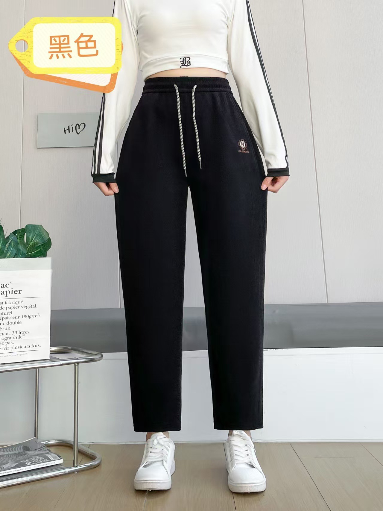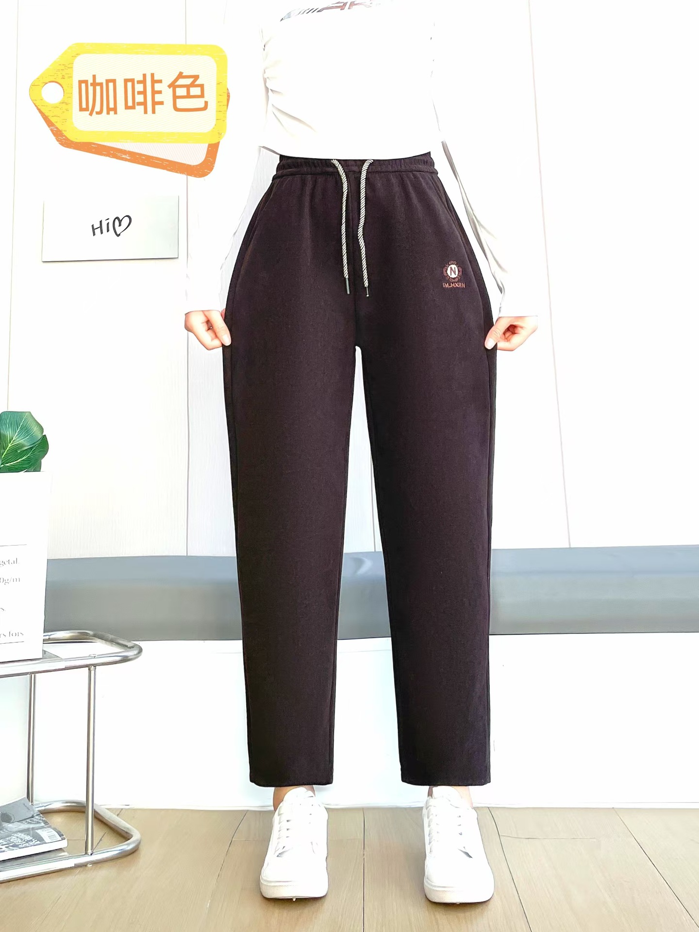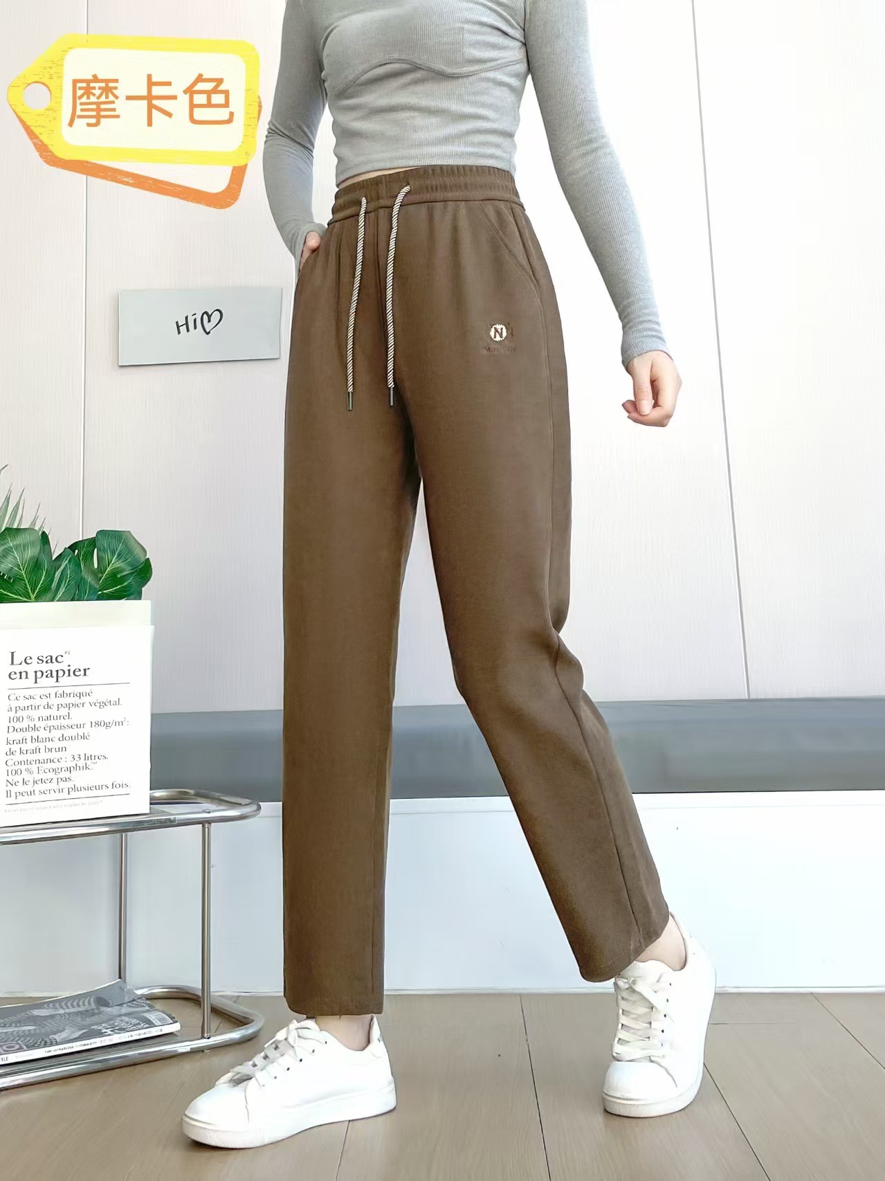 Новые повседневные брюки из молескина прямого кроя для женщин среднего возраста, коллекция весна-осень 2026, спортивные брюки из молескина с высокой талией.