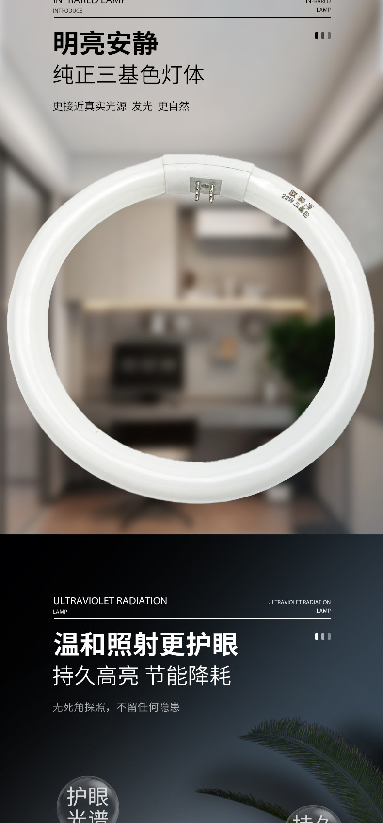 Кольцевая лампа T6, круглая потолочная лампа, четырехконтактный белый свет, бытовая энергосберегающая универсальная коммерческая лампа высокой яркости