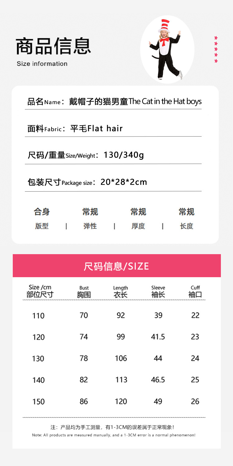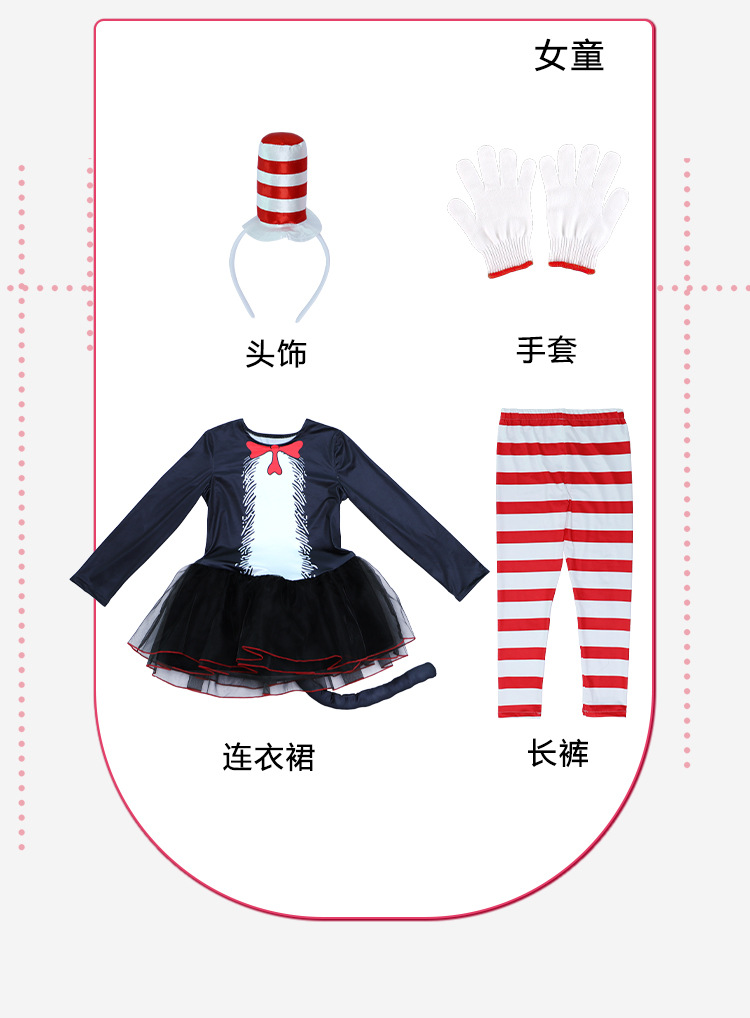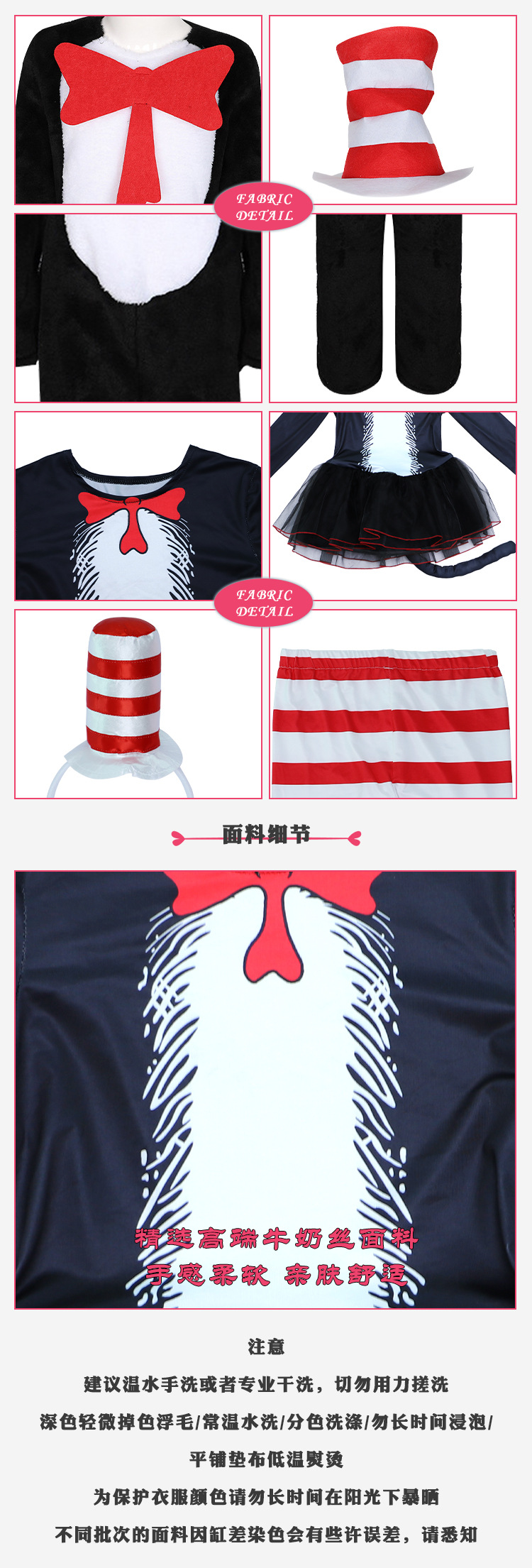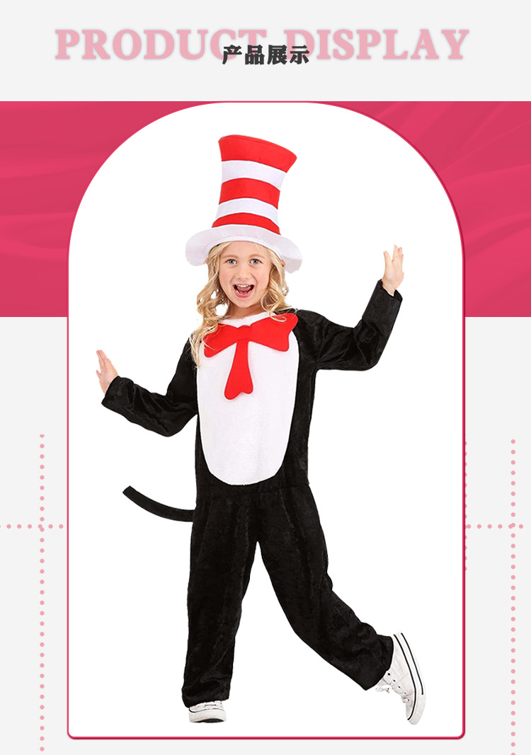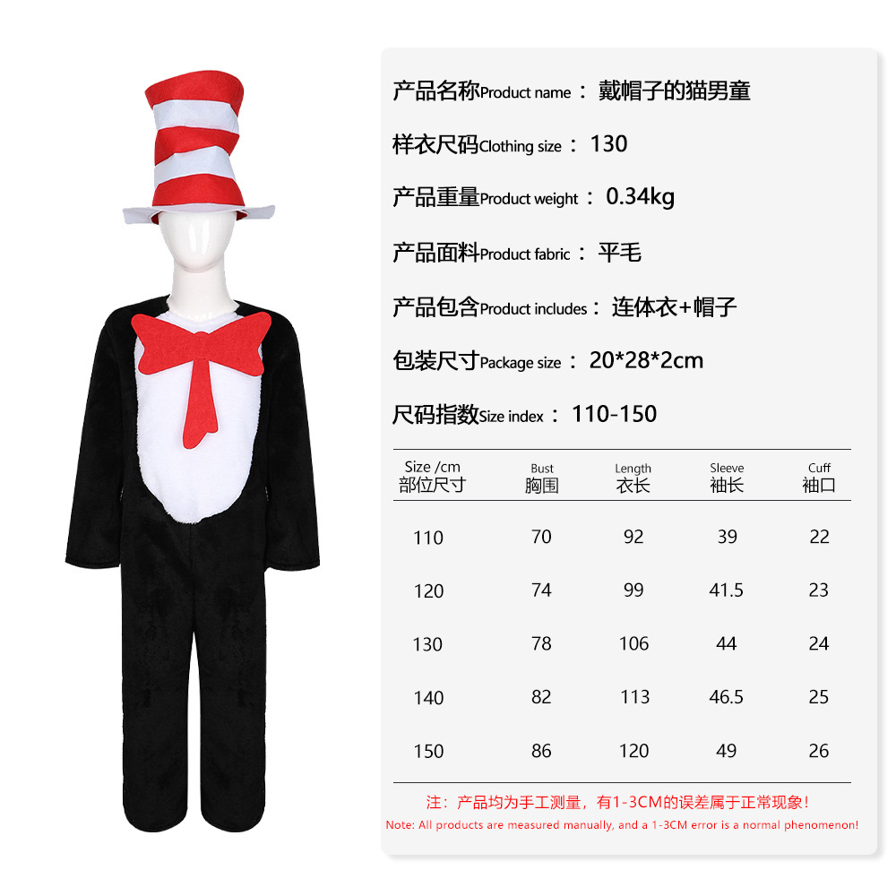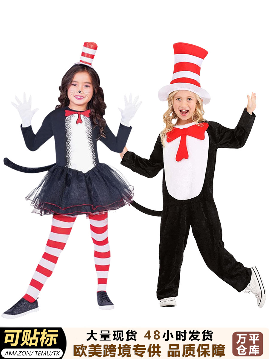 Костюм для косплей на Хэллоуин The Cat in the Hat Рождественское сценическое шоу Кошка в шляпе