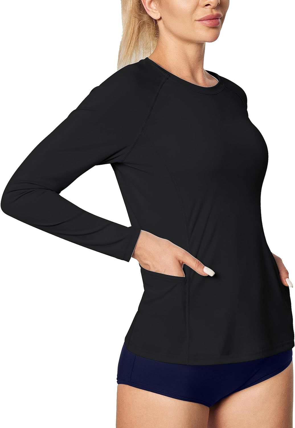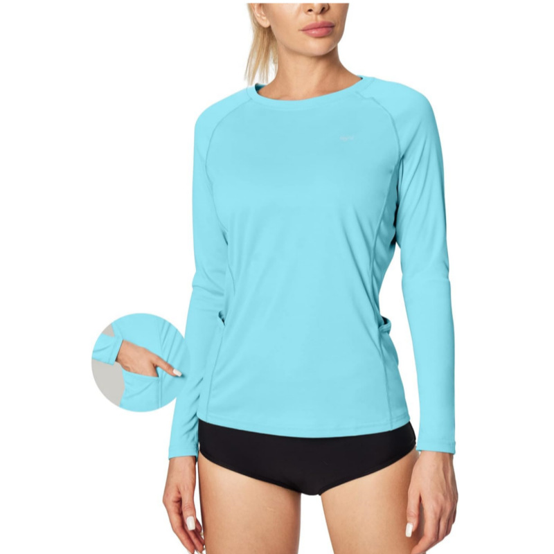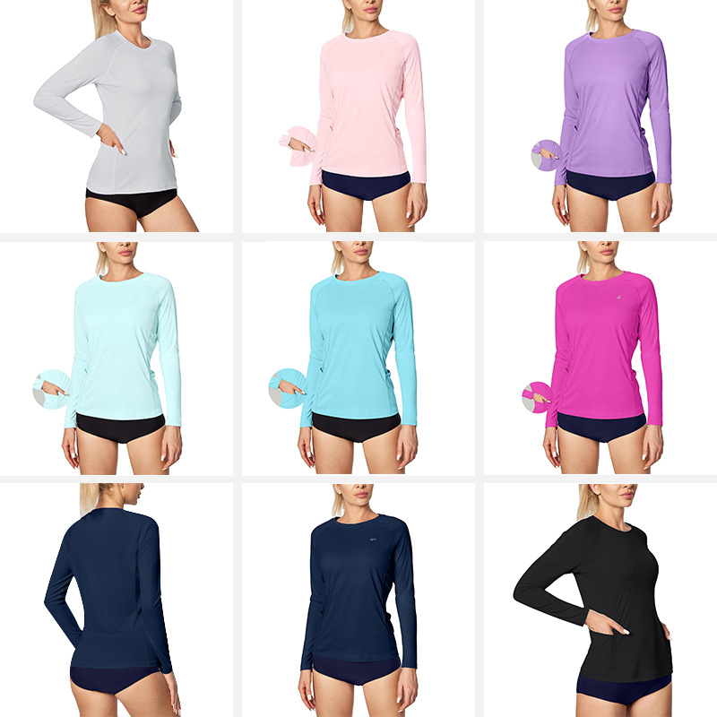 UPF50 Amazon солнцезащитный крем с длинными рукавами женский ледяной шелк с быстрым сухим круглым вырезом футболка для тонного фитнеса тренировочный спортивный топ