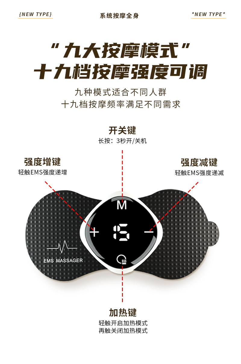 EMS Smart Тепловой шейный массаж Наклейка Беспроводной пульт дистанционного управления плеча и шеи Массаж Наклейки для рук, ног, талии, шейного массажа