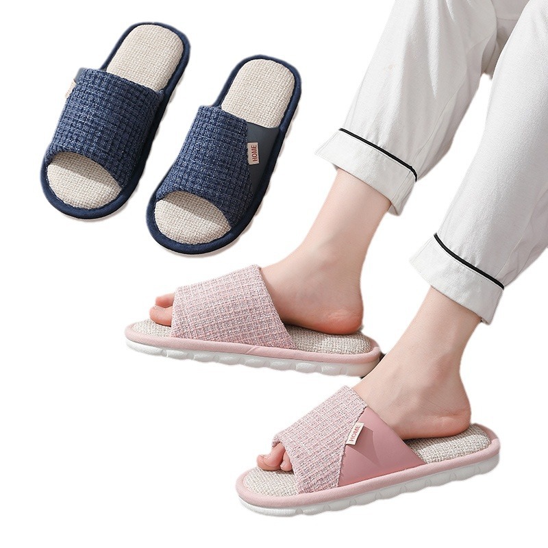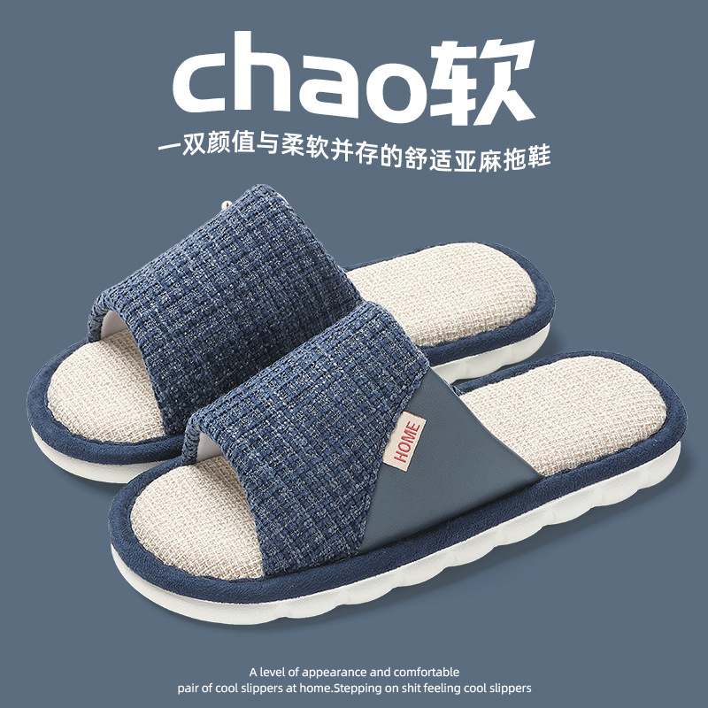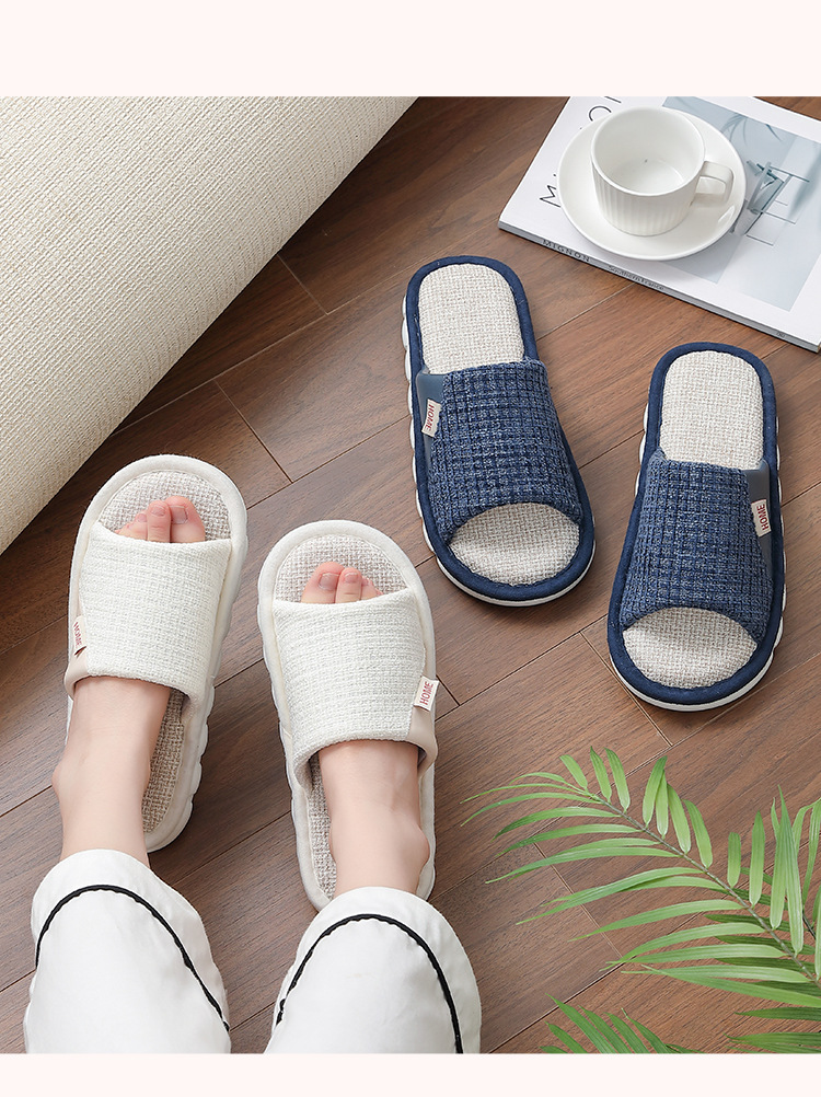 Дышащие льняные тапочки дамы крытый дом 2024 новый нескользящий всасывающий пот весной и осенью хлопчатобумажная обувь для мужчин