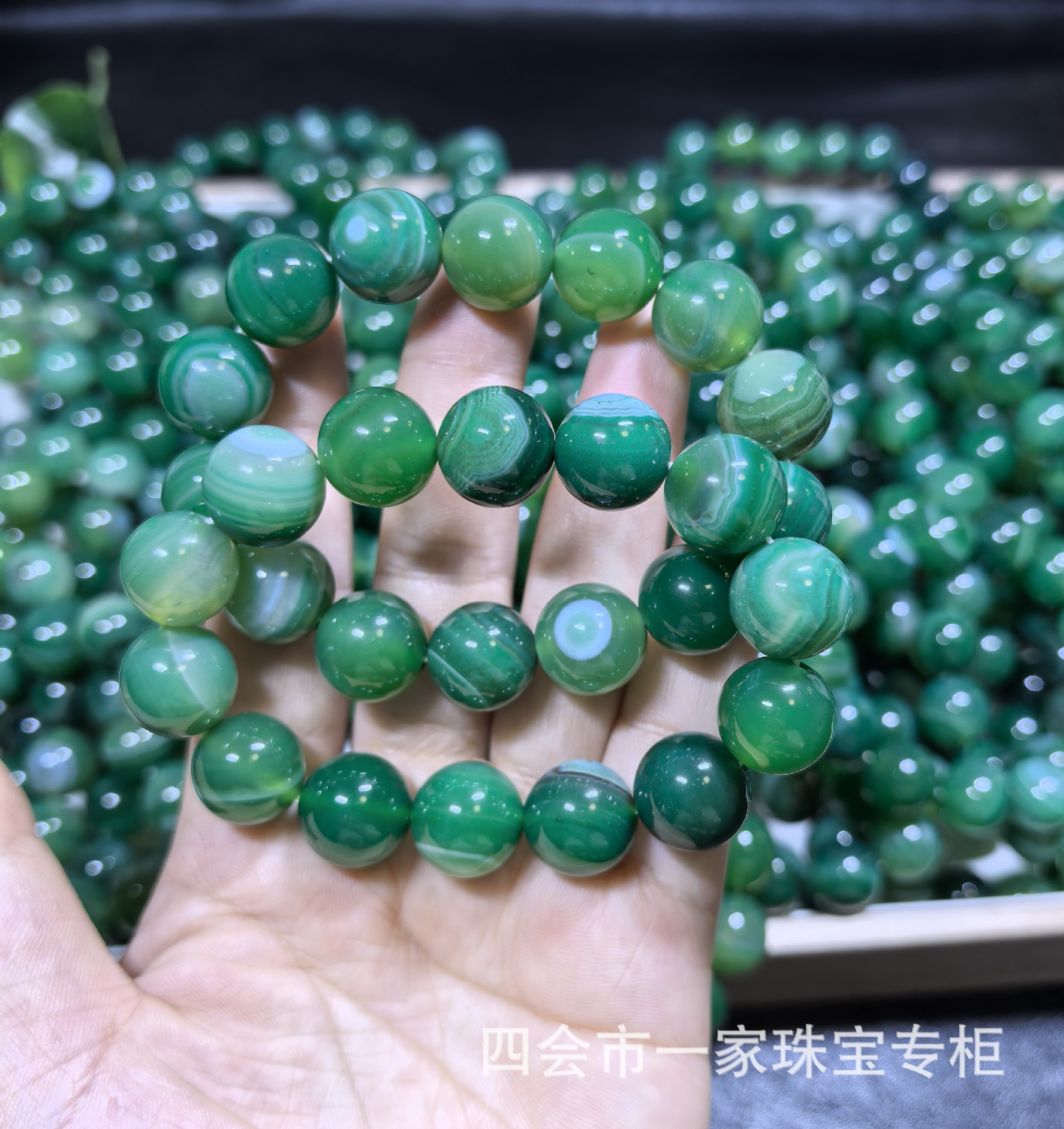 Натуральный зеленый полосатый агат шелк запутанный агатовый зеленый агатовый ручный шампур прямой комнаты благосостояния оптовая продажа