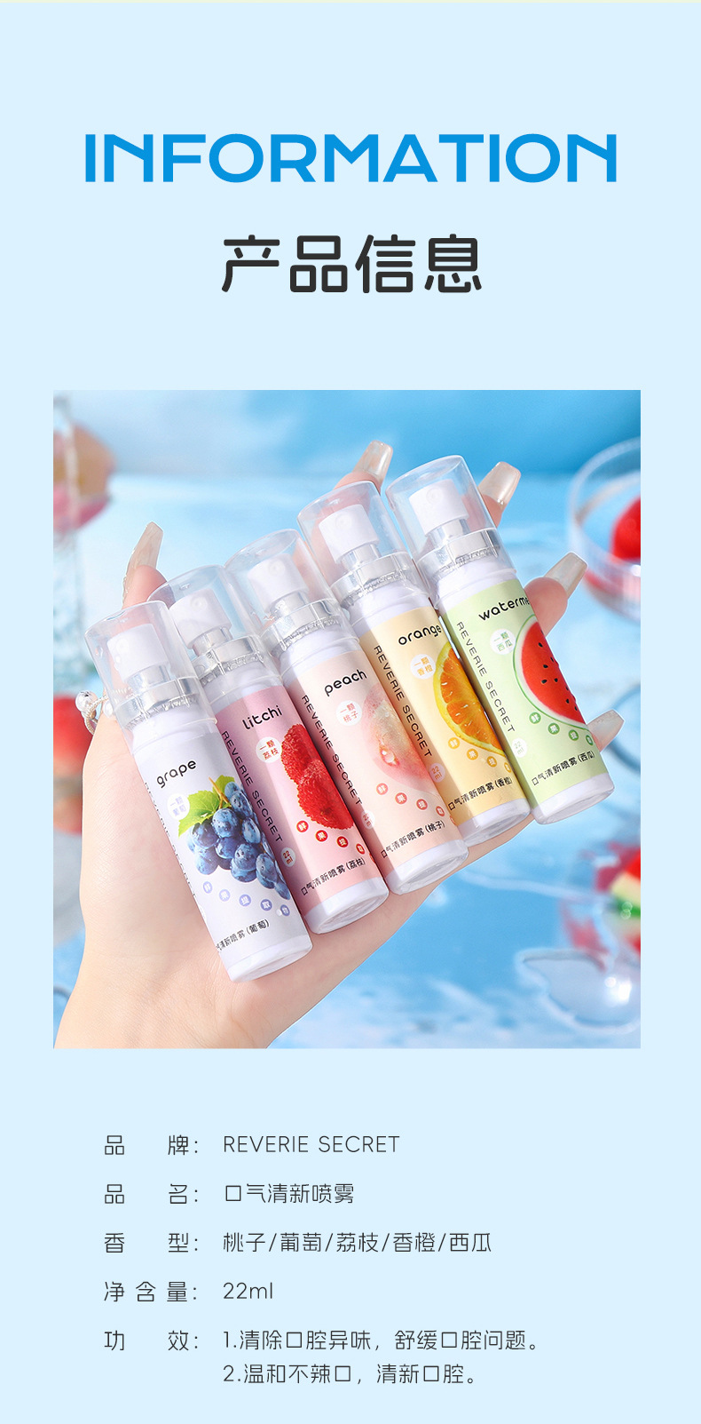Dream Secret Свежий спрей для дыхания Спрей персик Виноград личи арбуз оранжевый трансграничный 22 мл