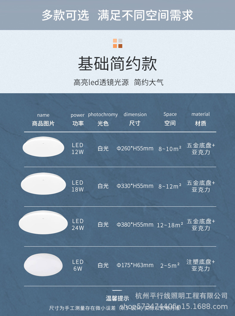[Трехнепроницаемый потолочный светильник] 12 Вт белого света-26*4,5 см; [Трехнепроницаемый потолочный светильник] 18 Вт белого света-33*4,5 см; [Трехнепроницаемый потолочный светильник] 24 Вт белого света-38*4,5 см