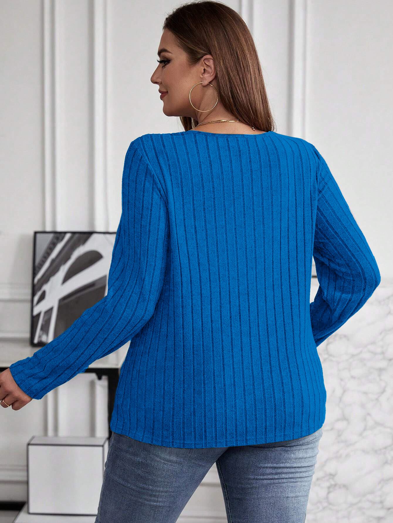 2025 Amazon Европейская и американская осенне-зимняя однотонная футболка большого размера с перекрестным v-образным вырезом и длинными рукавами, пуловер с полосками