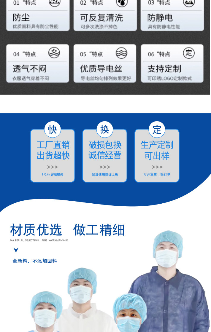 Пылезащитная одежда Одноразовые комбинезоны Нетканая защитная одежда Экспериментальная одежда Белое пальто Пищевая мастерская Чистая одежда