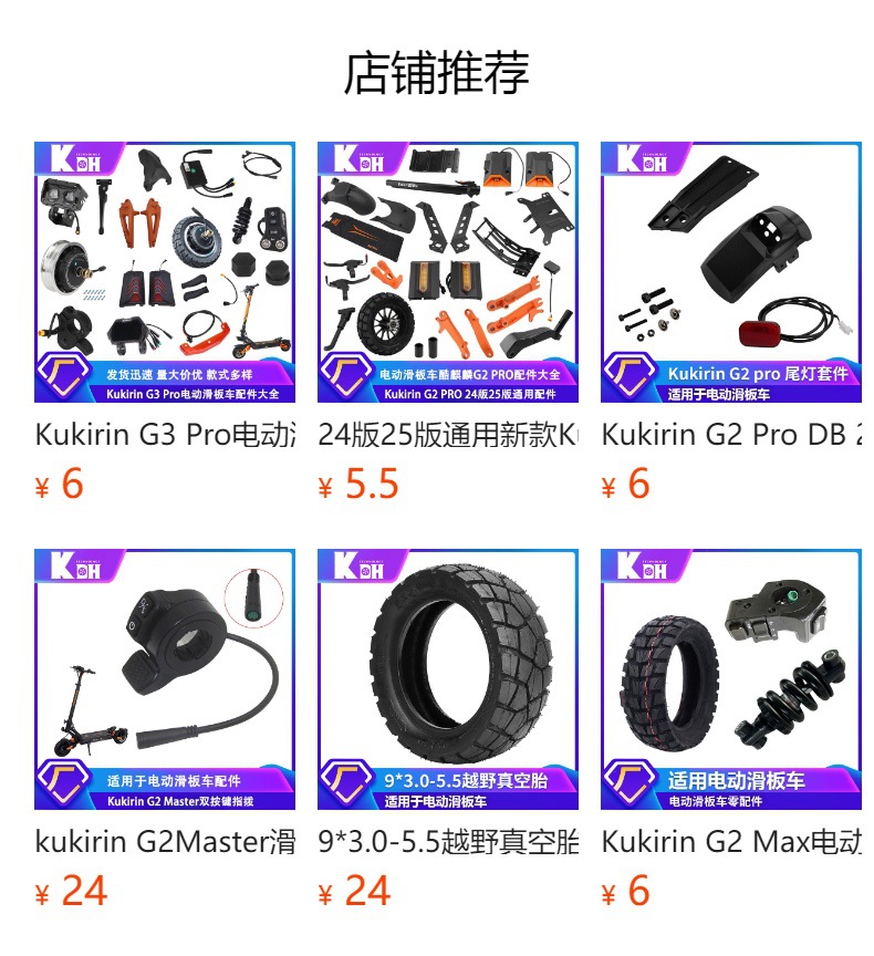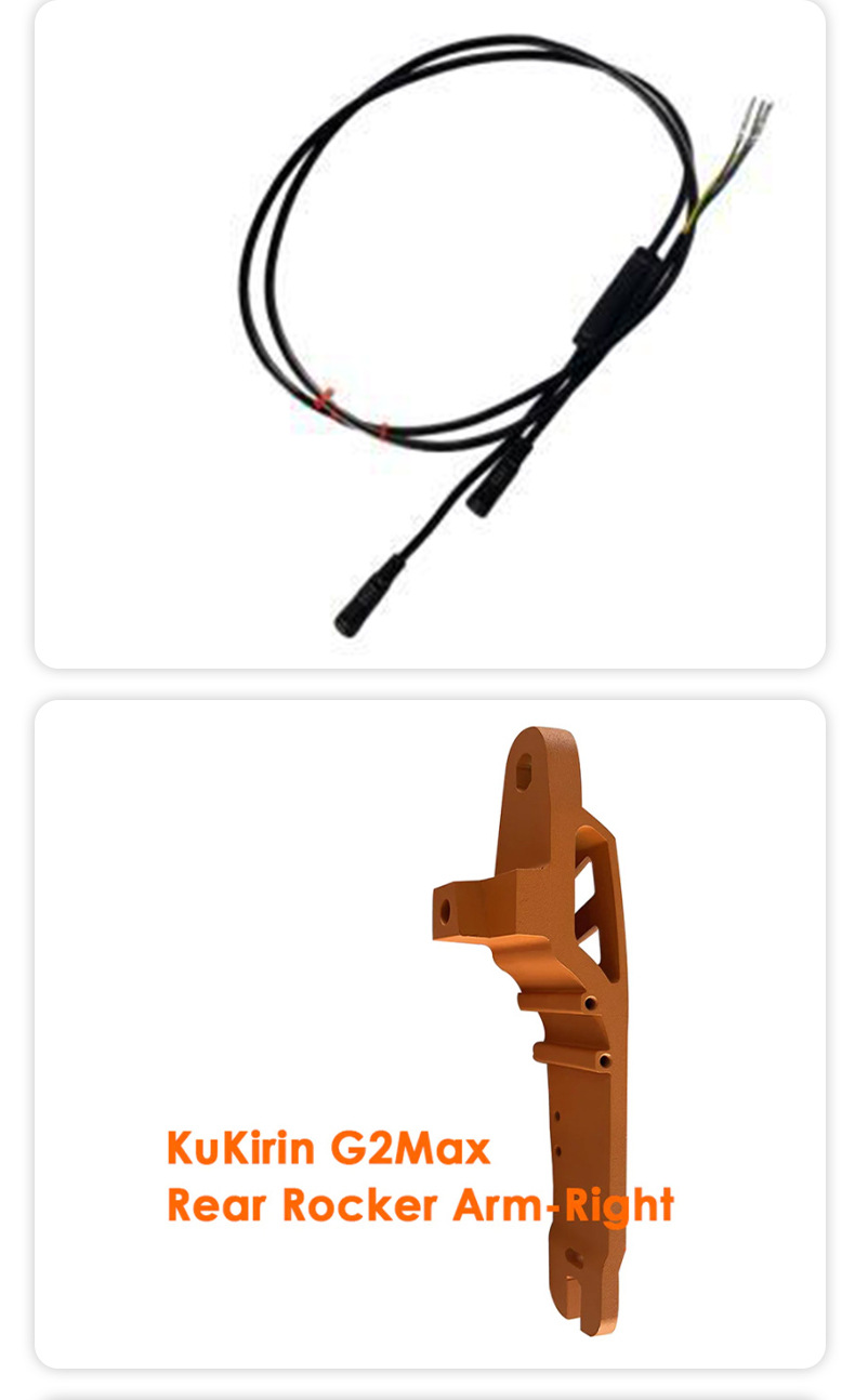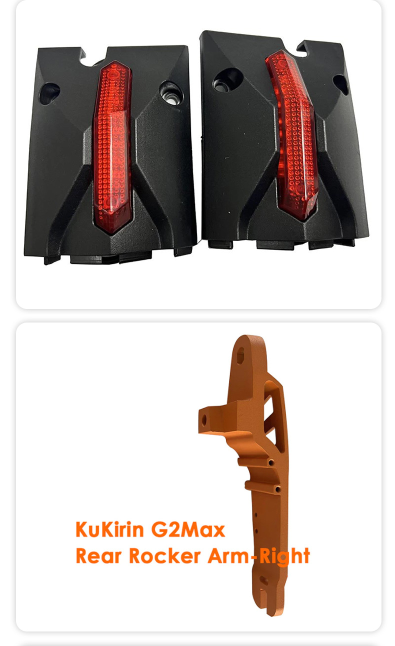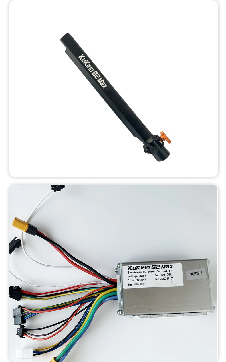 Запчасти для электросамоката Kukirin G2 Max: контроллер приборной панели, крыло, ручка газа, ручной тормоз, руль, шина.