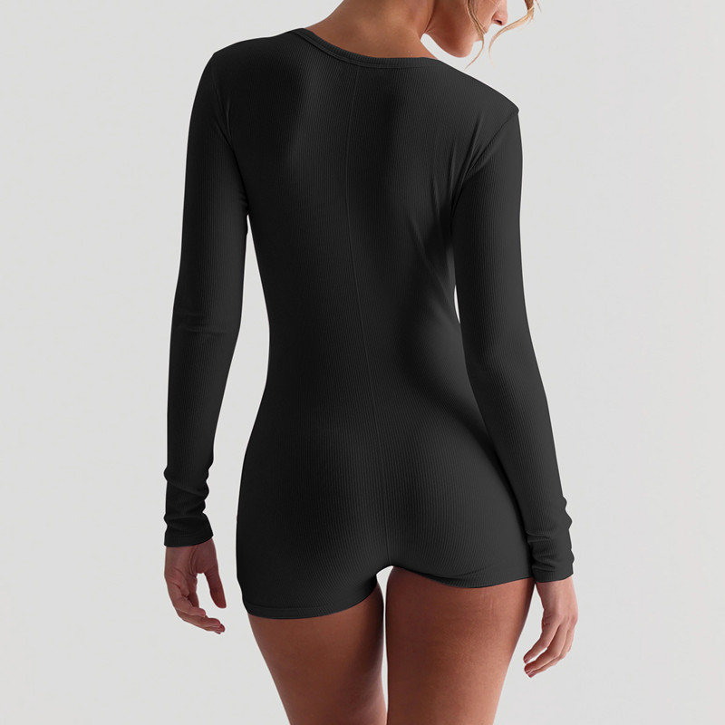 Европейский и американский ветер 2025 весна трансграничный новый ребристый сплошной цвет U-образный воротник узкие спортивные йога комбинезоны оптом