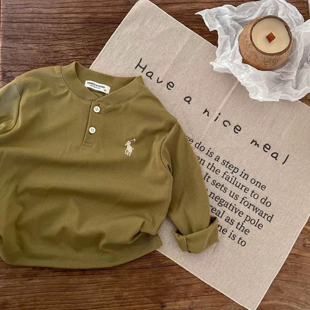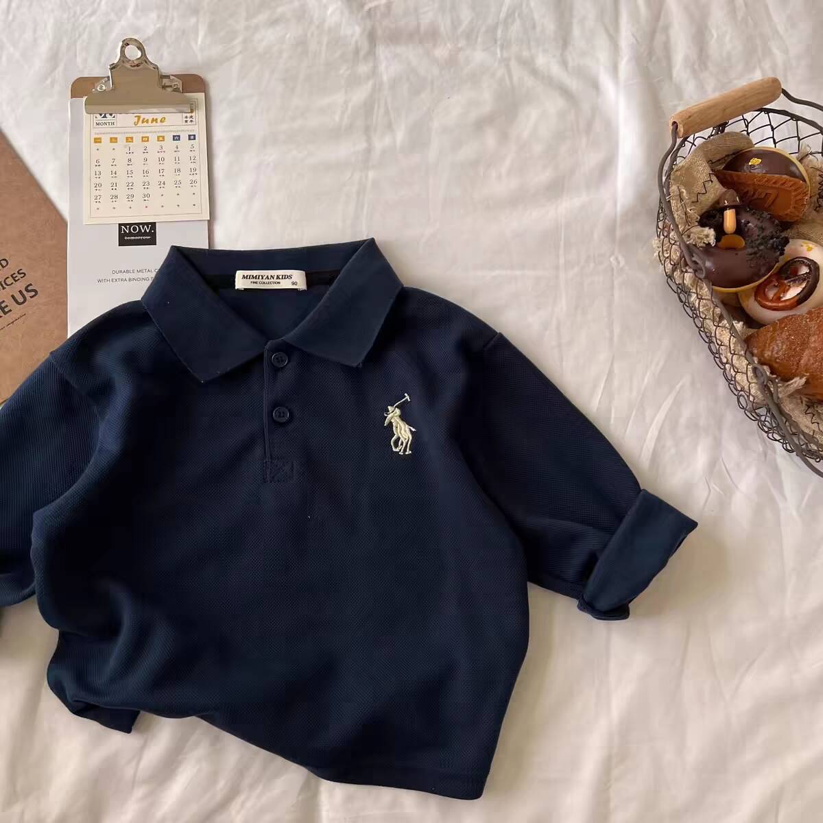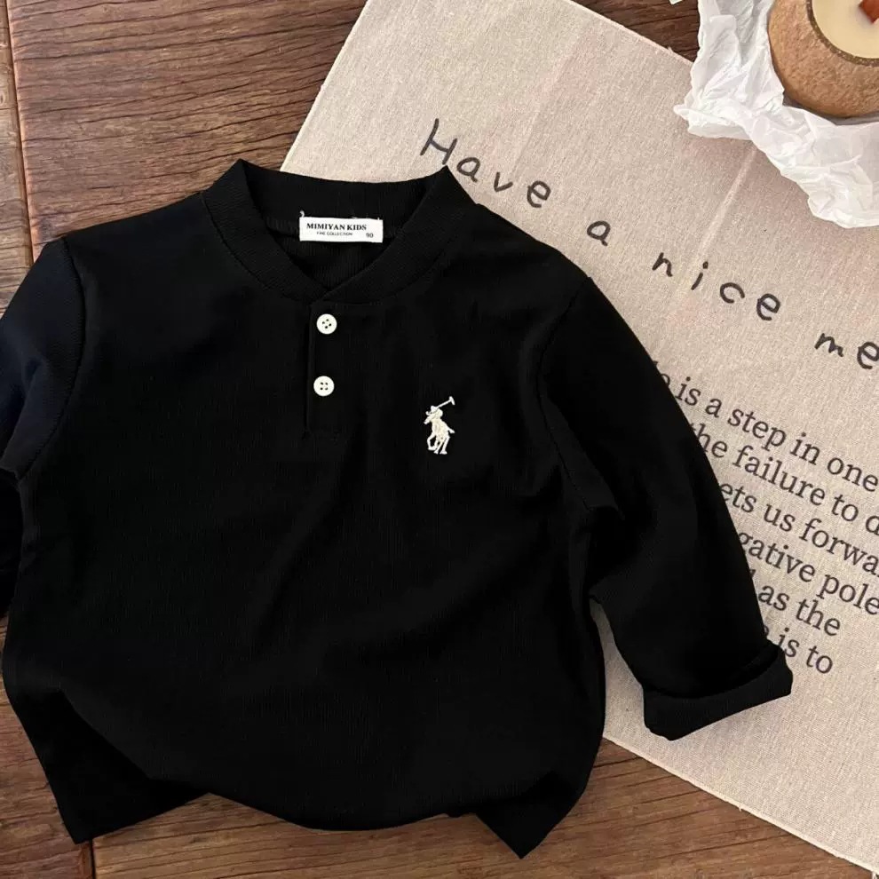 Детская рубашка-поло с длинными рукавами, весна-осень 2024, свободные детские топы с длинными рукавами и вышитыми лацканами для мальчиков, оптовая продажа