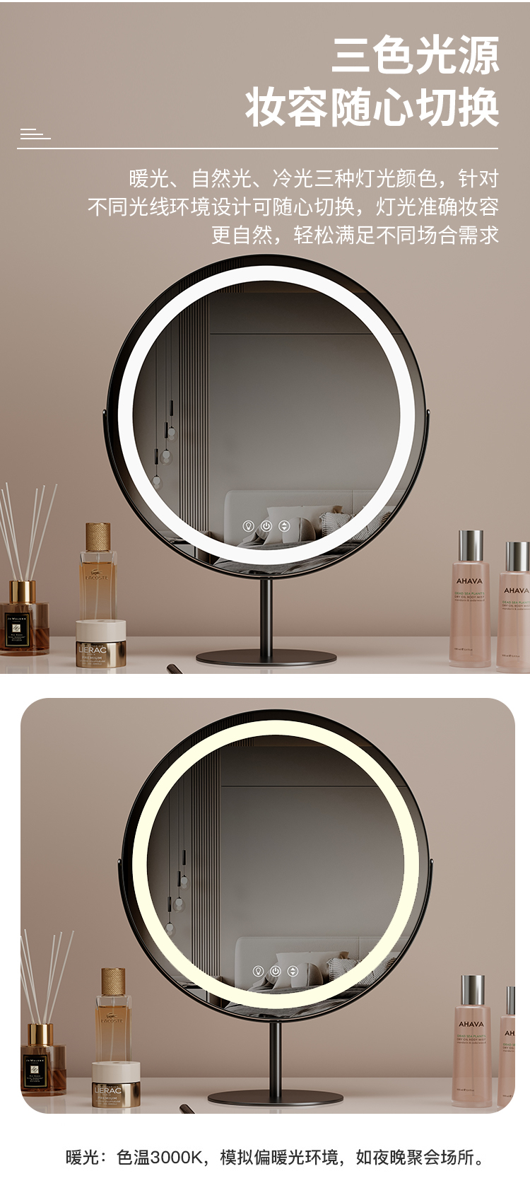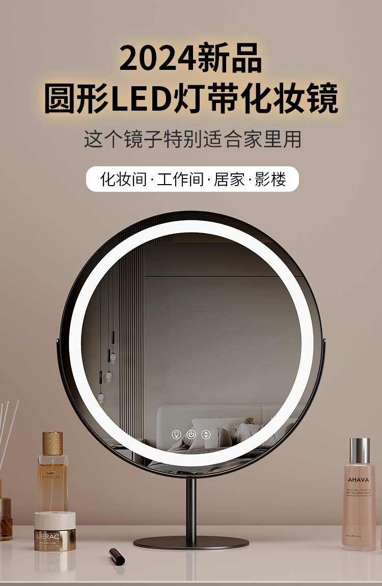 Зеркало для макияжа со светодиодной подсветкой, настольное зеркало для макияжа для девочек, спальни, студенческое общежитие, зеркало для макияжа, сенсорный экран, высокий внешний вид