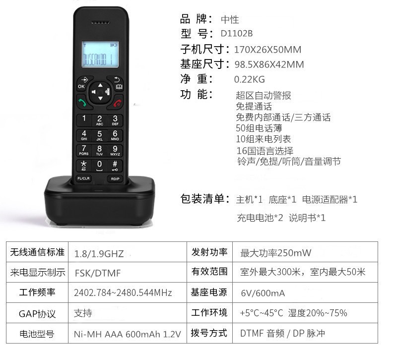 Нейтральный цифровой беспроводной телефон без логотипа стационарный домашний бизнес офис портативный телефон D1102B трансграничный