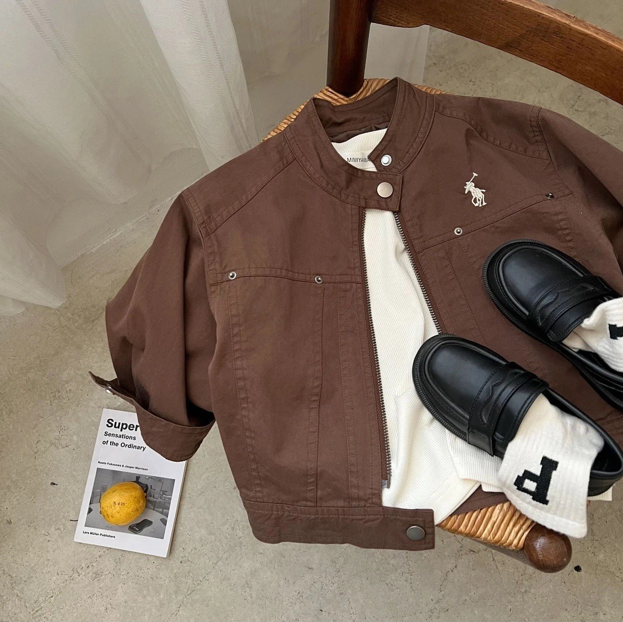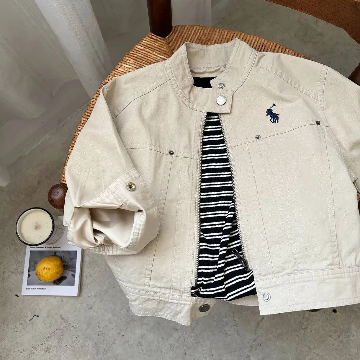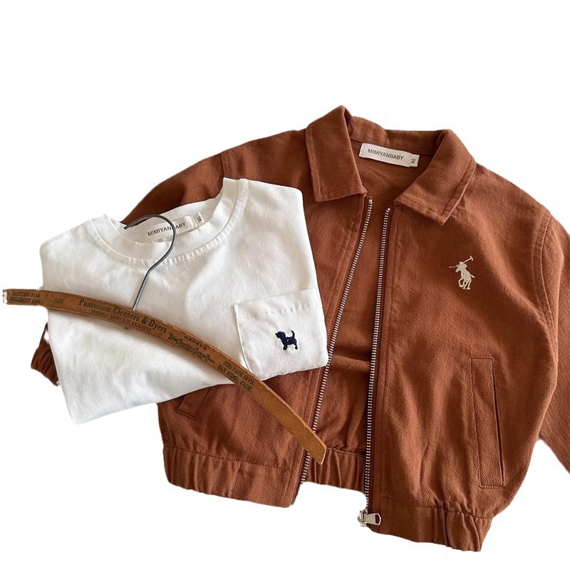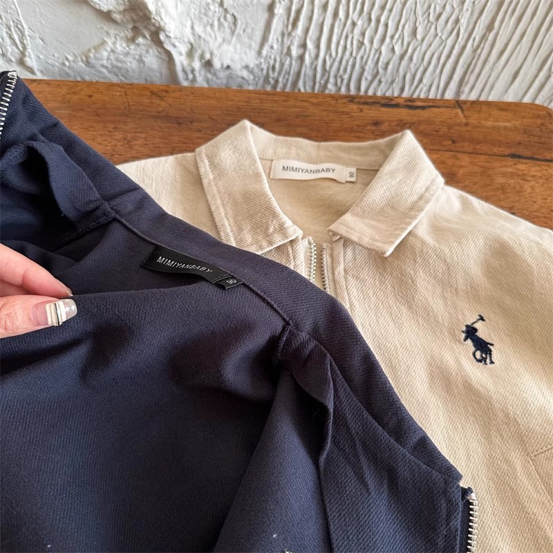 Детская куртка 2026 года, весенне-осенний стиль для мальчиков и девочек, модная японская брендовая куртка с вышивкой и отложным воротником, короткая куртка на молнии для мальчиков.