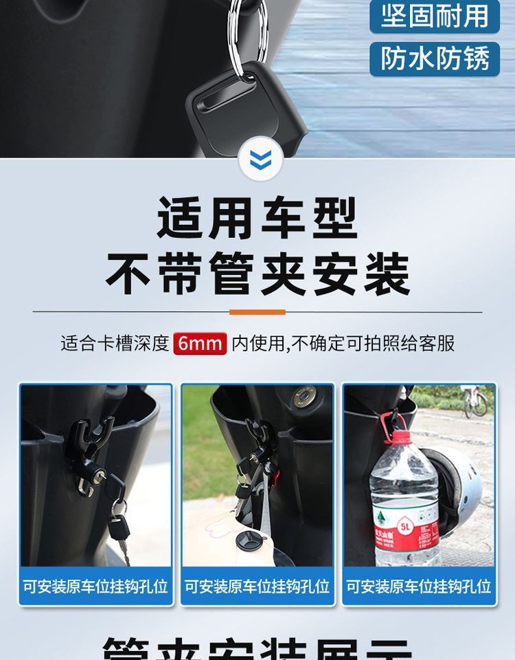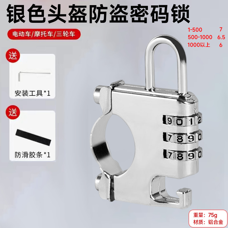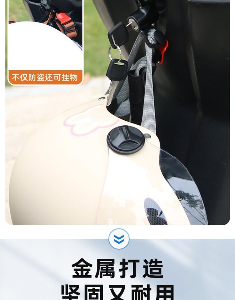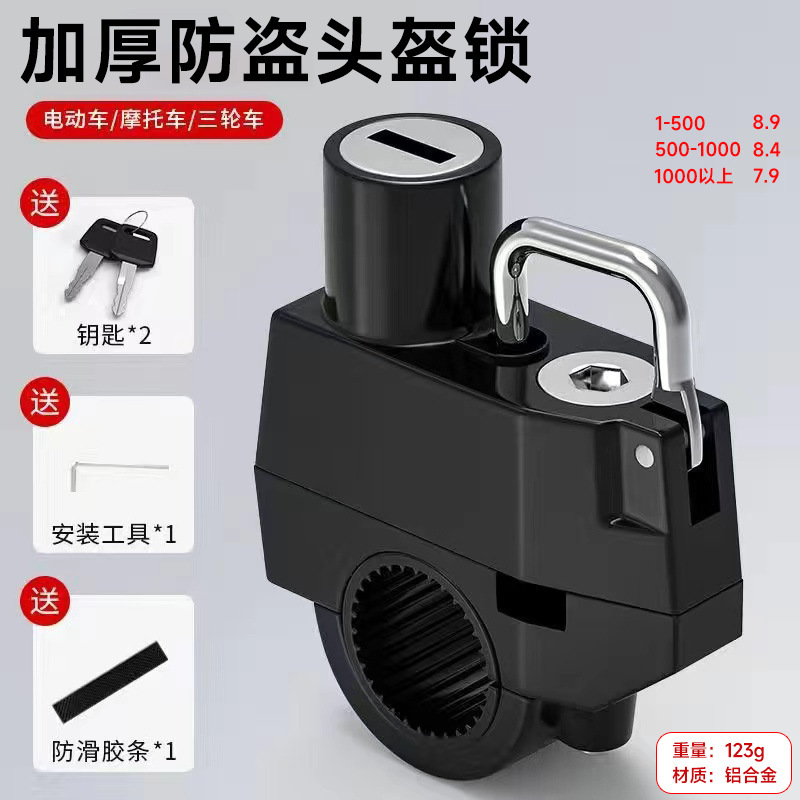 Замок из сплава с двойным крючком; Замок для шлема с ключом в виде коровьей головы; Замок для шлема с головой кролика; Двойная головка с крючком; (Рука Когтя Дракона) Замок на крючок; Маленький зажим для трубки (можно использовать с вышеуказанным замком для шлема); Большой хомут для труб (можно использовать с вышеуказанным замком для шлема); Обычный замок для шлема [инструменты для установки в комплекте]; Замок для шлема из алюминиевого сплава [инструменты для установки включены]; Полностью алюминиевый замок для шлема [инструменты для установки в комплекте]; Замок для шлема с двойным крючком и обычным ключом; Замок шлема с ключом для большого пальца; Утолщенный замок для шлема из сплава; Полностью цинковый утолщенный замок для шлема с ключом; Черный трехзначный кодовый замок для шлема; Серебряный трехзначный кодовый замок для шлема; одинарный крючок; Двойной крючок; Замок-крючок для основания зеркала