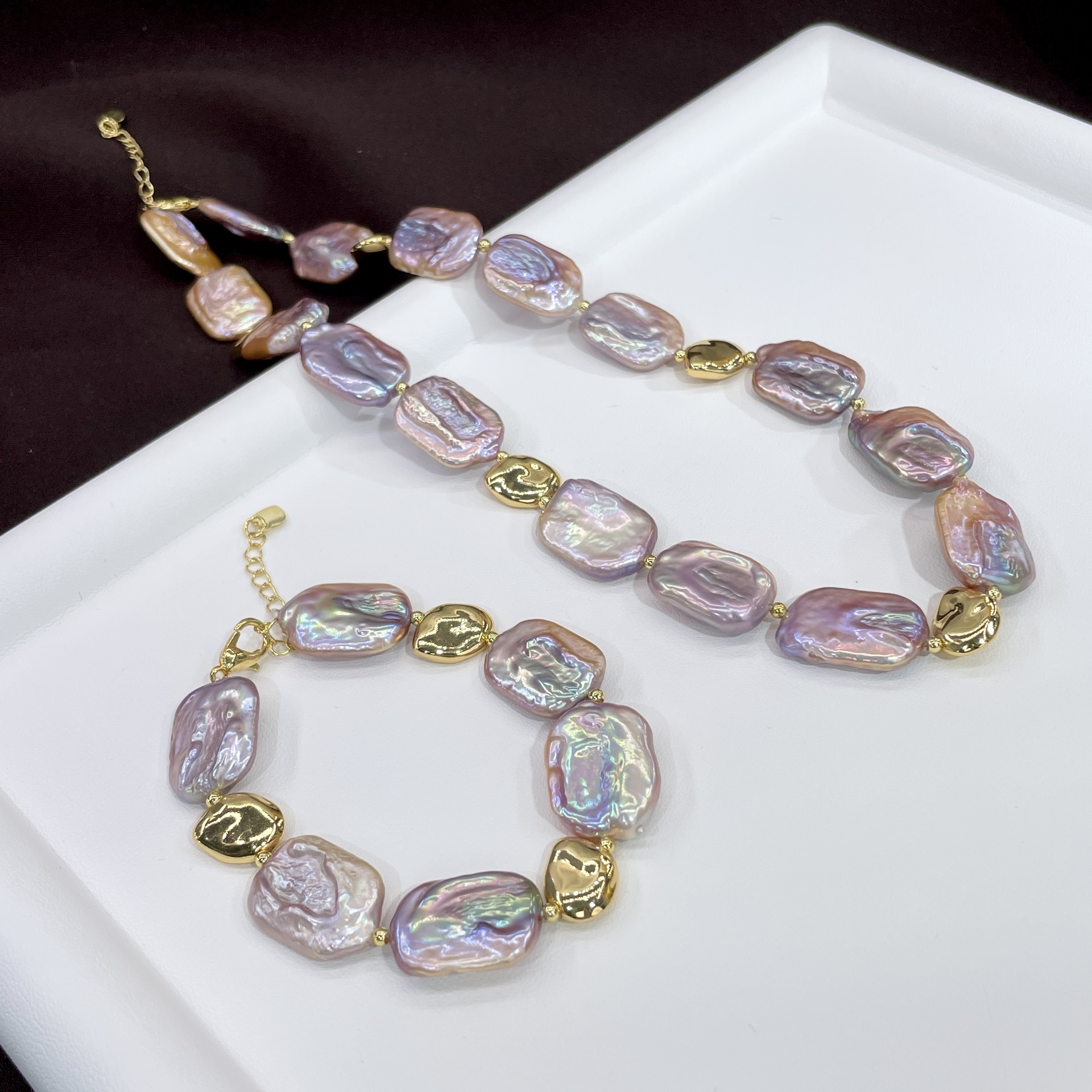 Барочное натуральное пресноводное жемчужное ожерелье набор женский нишу дизайн высокого уровня летний блок браслет шейный