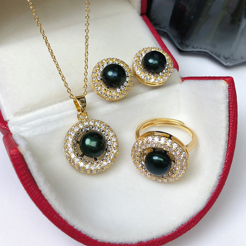 Пресноводный жемчуг Ожерелье набор из трех частей модный кулон кольцо серьги гвоздики 8-9 мм булочки на пару бусы дикие женские оптом
