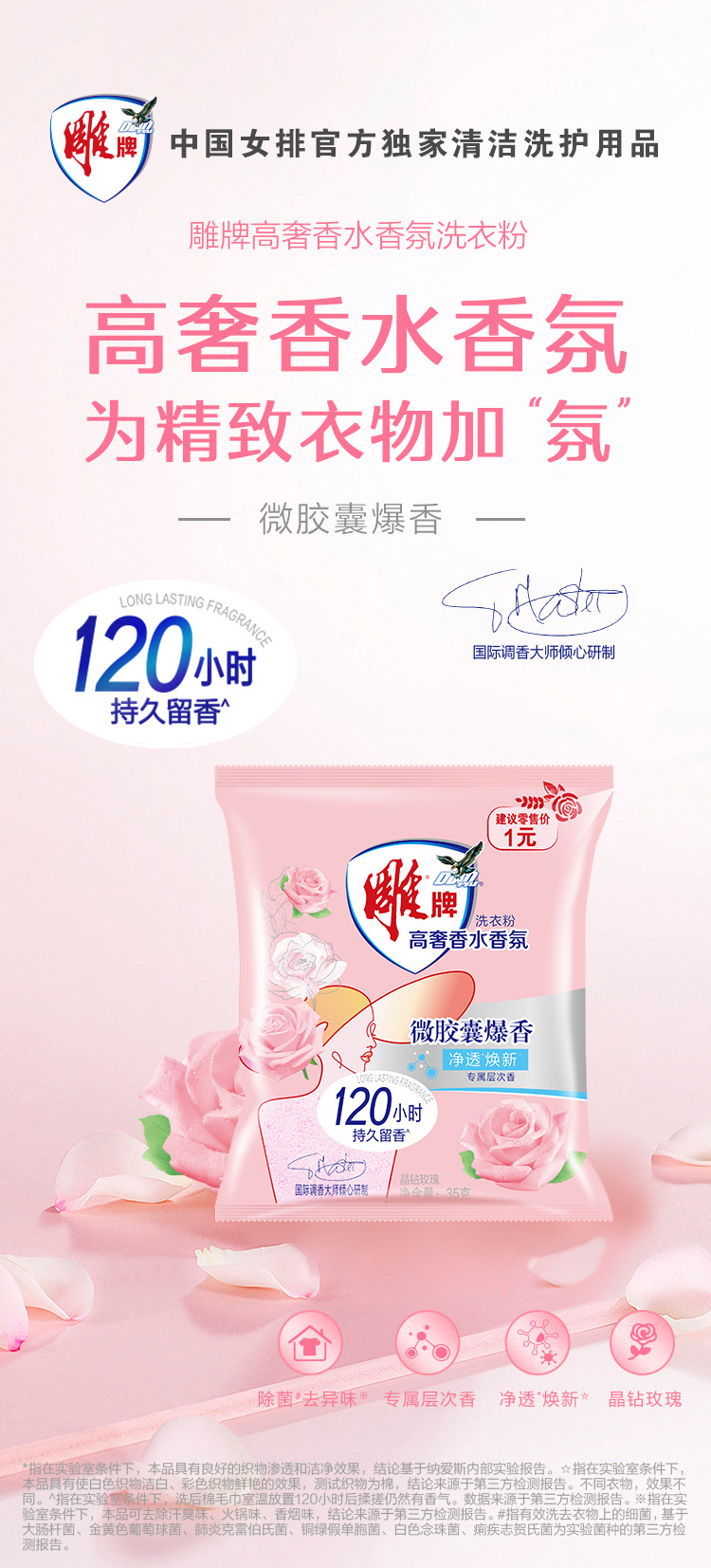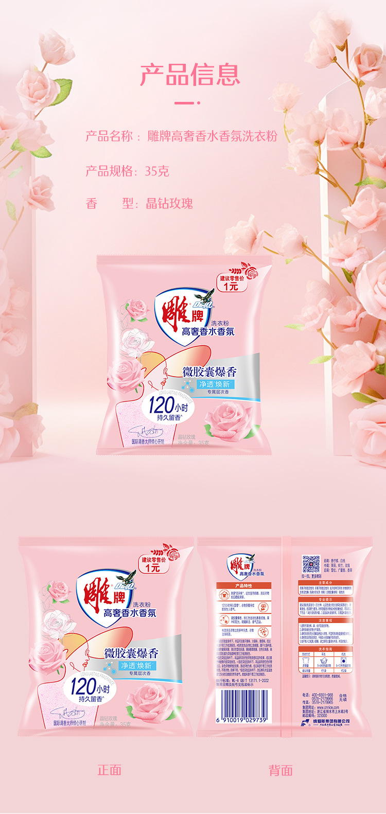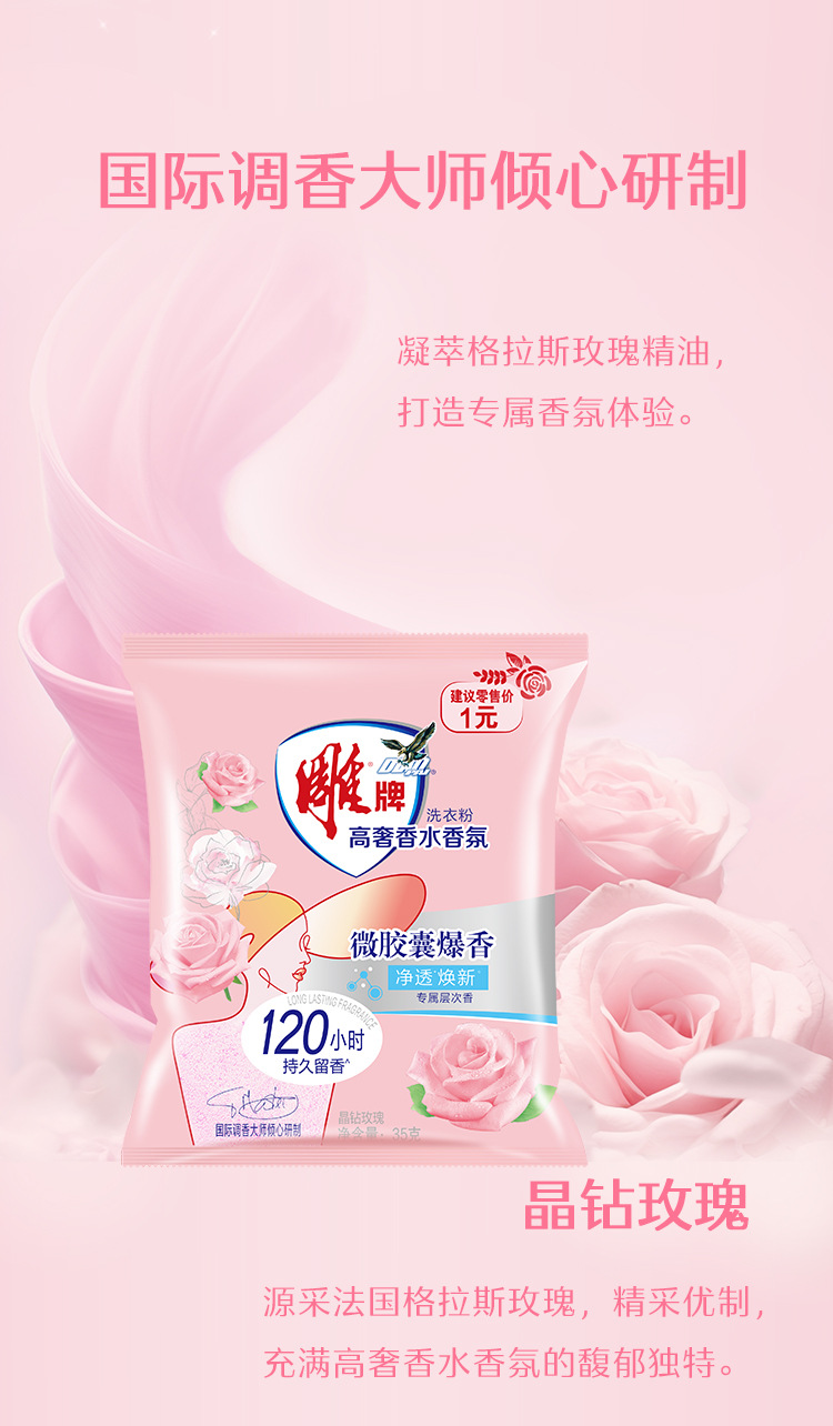 Высококачественный парфюмированный стиральный порошок Diao, 35 г, дорожный пробный набор, стойкий аромат до 120 часов, для домашнего использования, устраняет запахи.