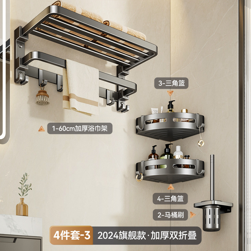 Цельный роскошный складной пистолет двойного назначения, серая вешалка для полотенец, настенная вешалка для полотенец для ванной комнаты, набор для ванной комнаты без перфорации