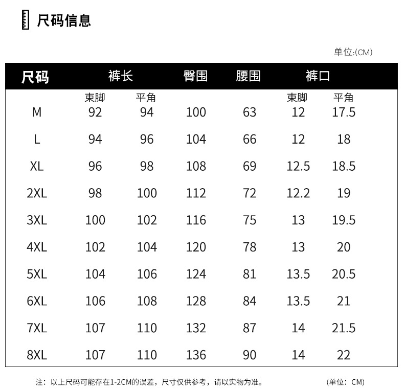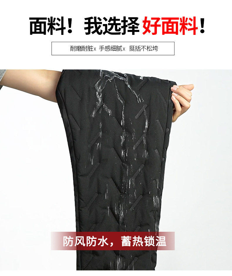 高品质防水防风加绒棉裤,批发走量,有质有量,量大联系客服, 手工测量量法不同可能出现的数值不一样 具体请咨询客服 平均重量约500克左右 最大码8XL克重约530克左右 包装袋尺寸36*42