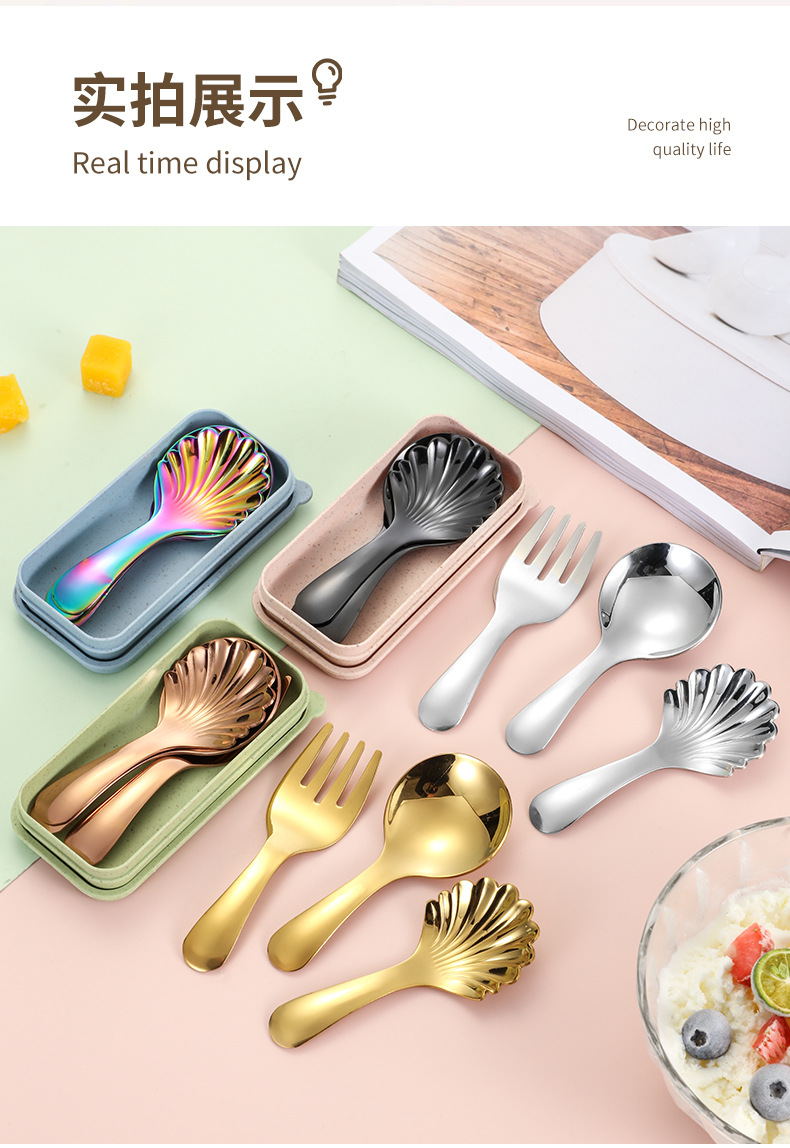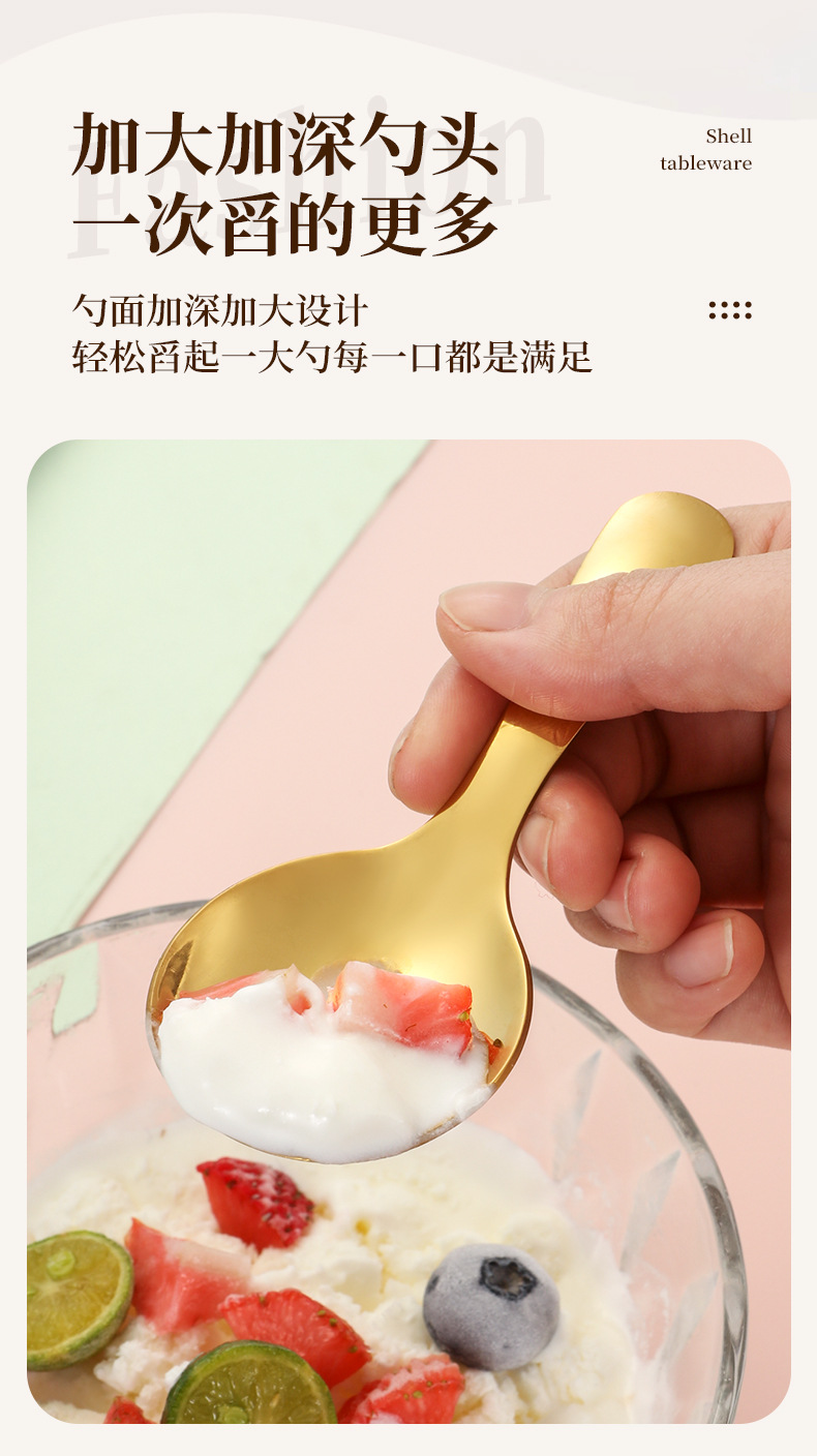 Amazon 304 Нержавеющая сталь Детская ложка Детская ложка Креативная короткая ручка Мини-мороженая ложка Десерт вилка ложка раковины