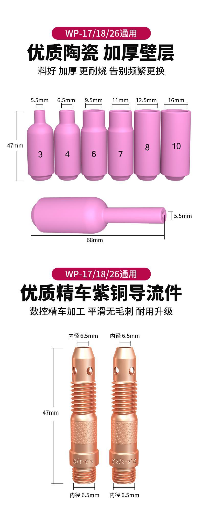 Аргон дуговой сварки фарфоровый рот WP17 дефлекторный элемент 18 сварочная горелка 26 головка пистолета длинная крышка с коротким давлением вольфрамовая игла паттерны среднего хвоста