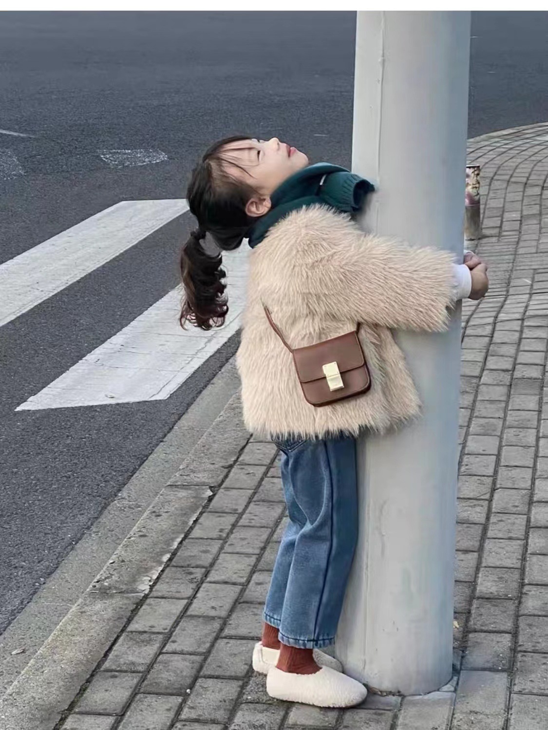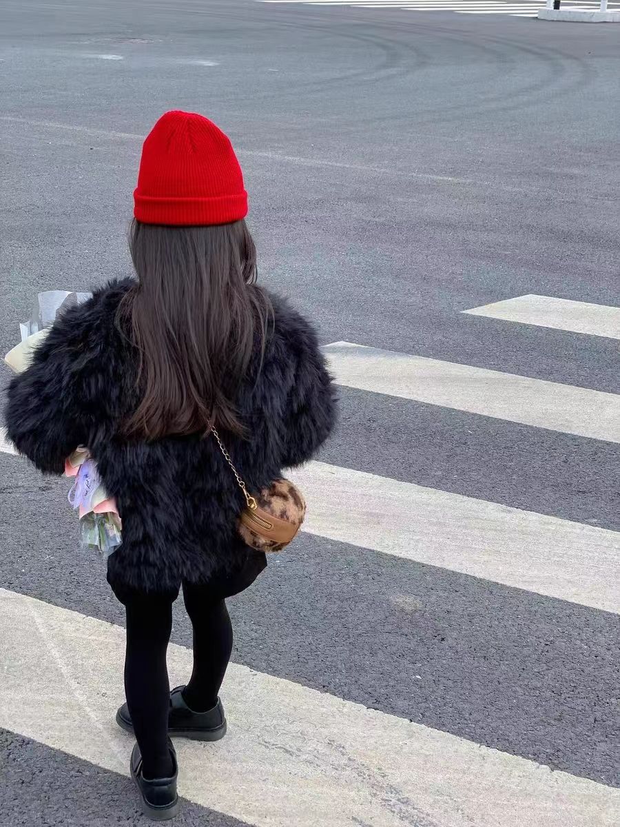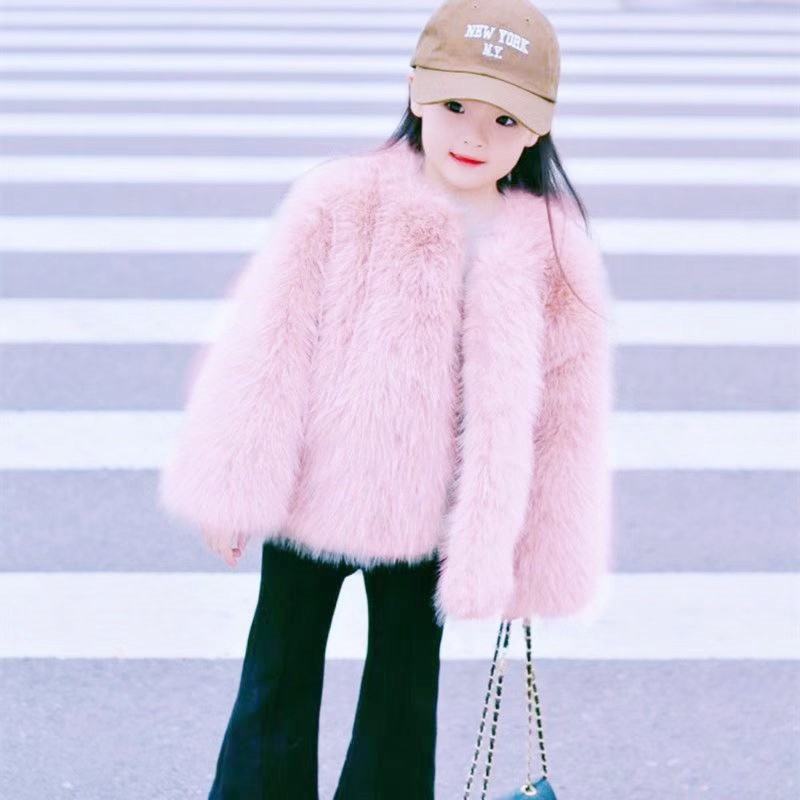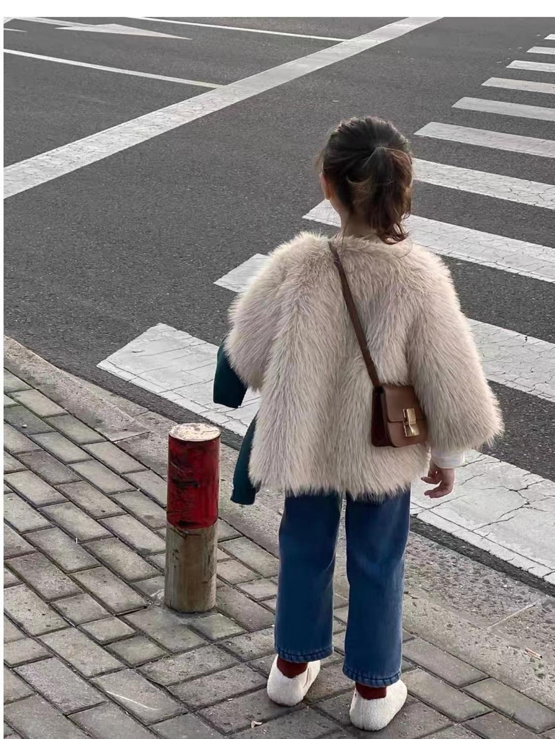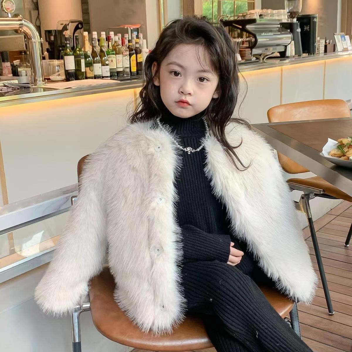 2025 Осень и зима Новые детские меховые топы для девочек easiest для сочетания и в западном стиле Корейский стиль Детский однотонный меховой топ с круглым вырезом