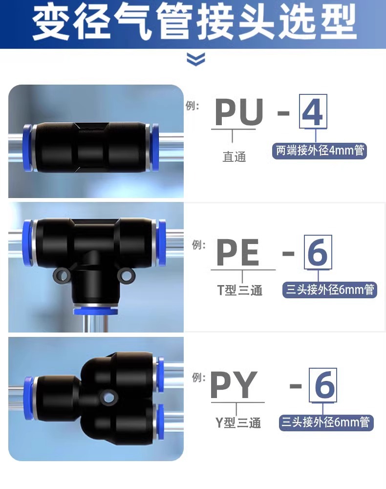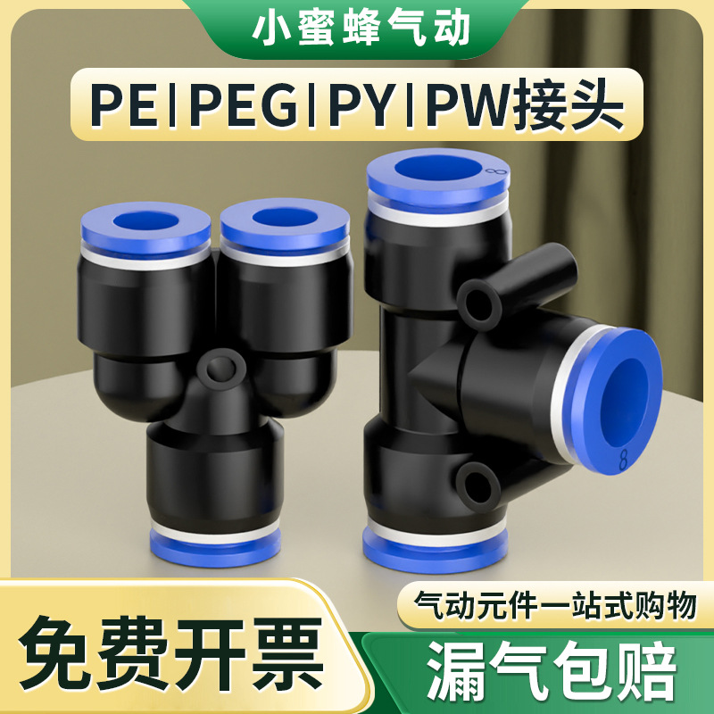 Фабрика прямых продаж пневматический быстрый разъем PY через PE тройник PW с переменной диаметром