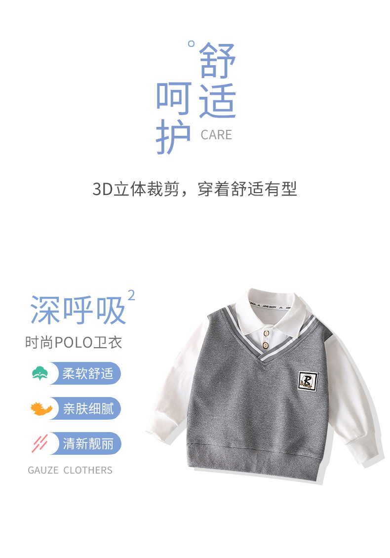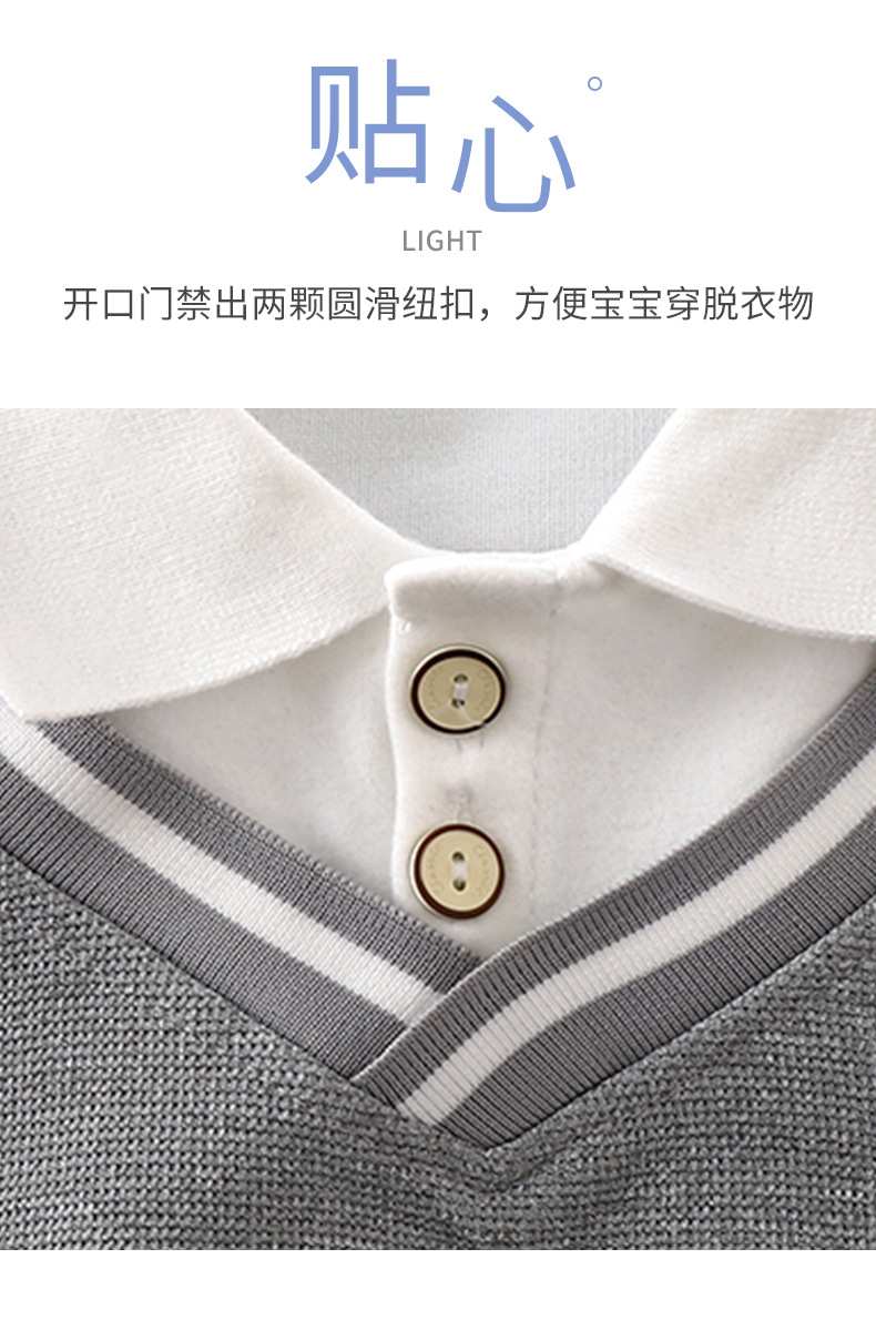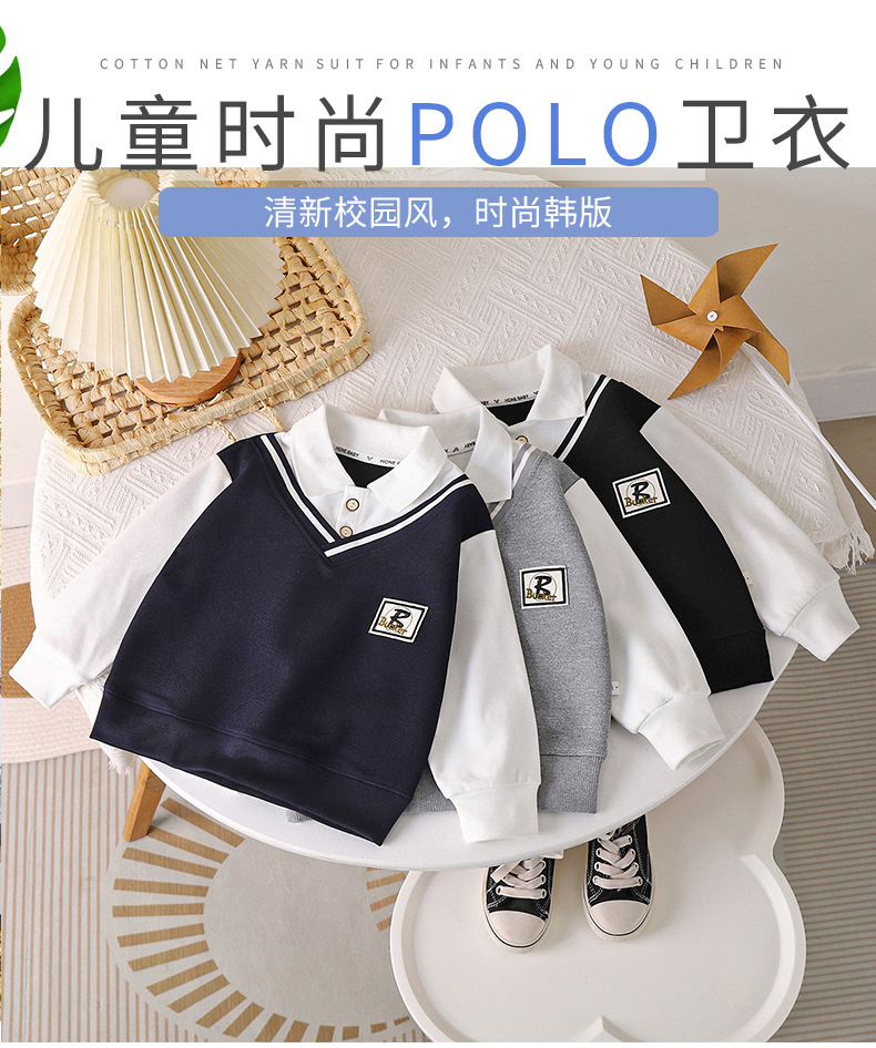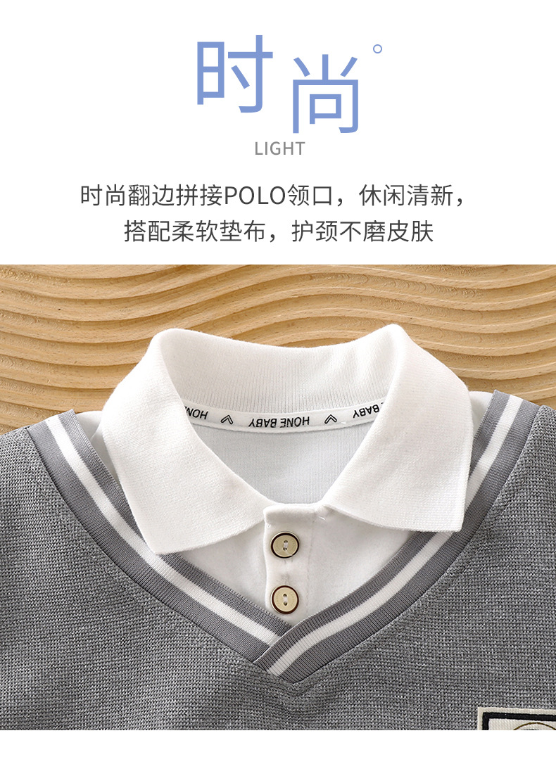 Толстовка с воротником-поло для мальчиков, осенняя новинка, универсальная мода из двух частей в британском стиле для детей старшего возраста.