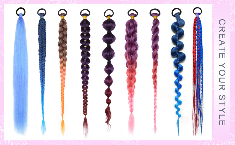 Фабрика девушки резиновые ленты конский хвост парик косы бокс косы цветные эластичные веревки косы детский хвост парик